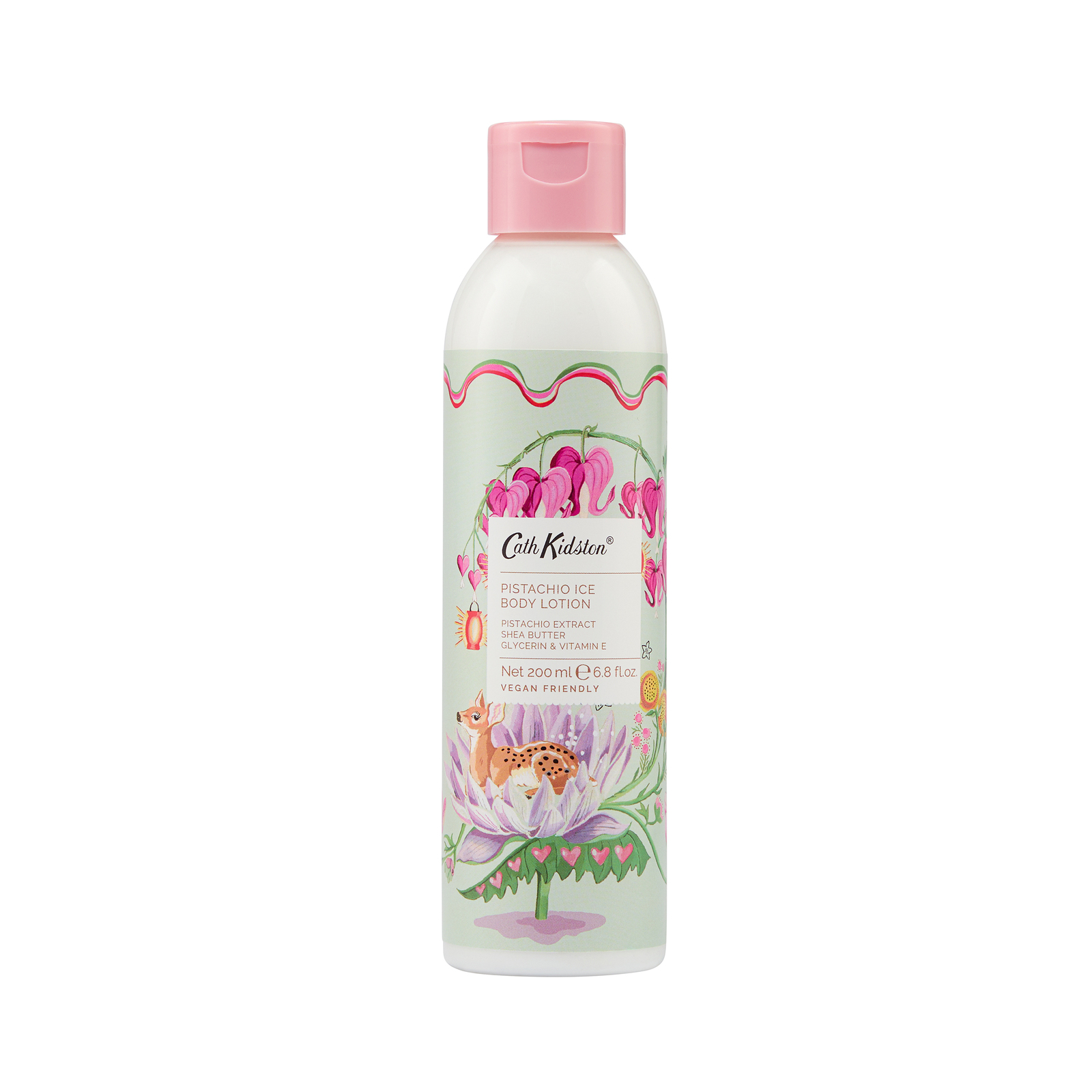 Enchanting carnival inspired gift filled with bathing goodies of gentle body wash and soft body lotion fragranced with delicious Pistachio Ice, and a classic Cath Kidston polka dot cotton hand towel.