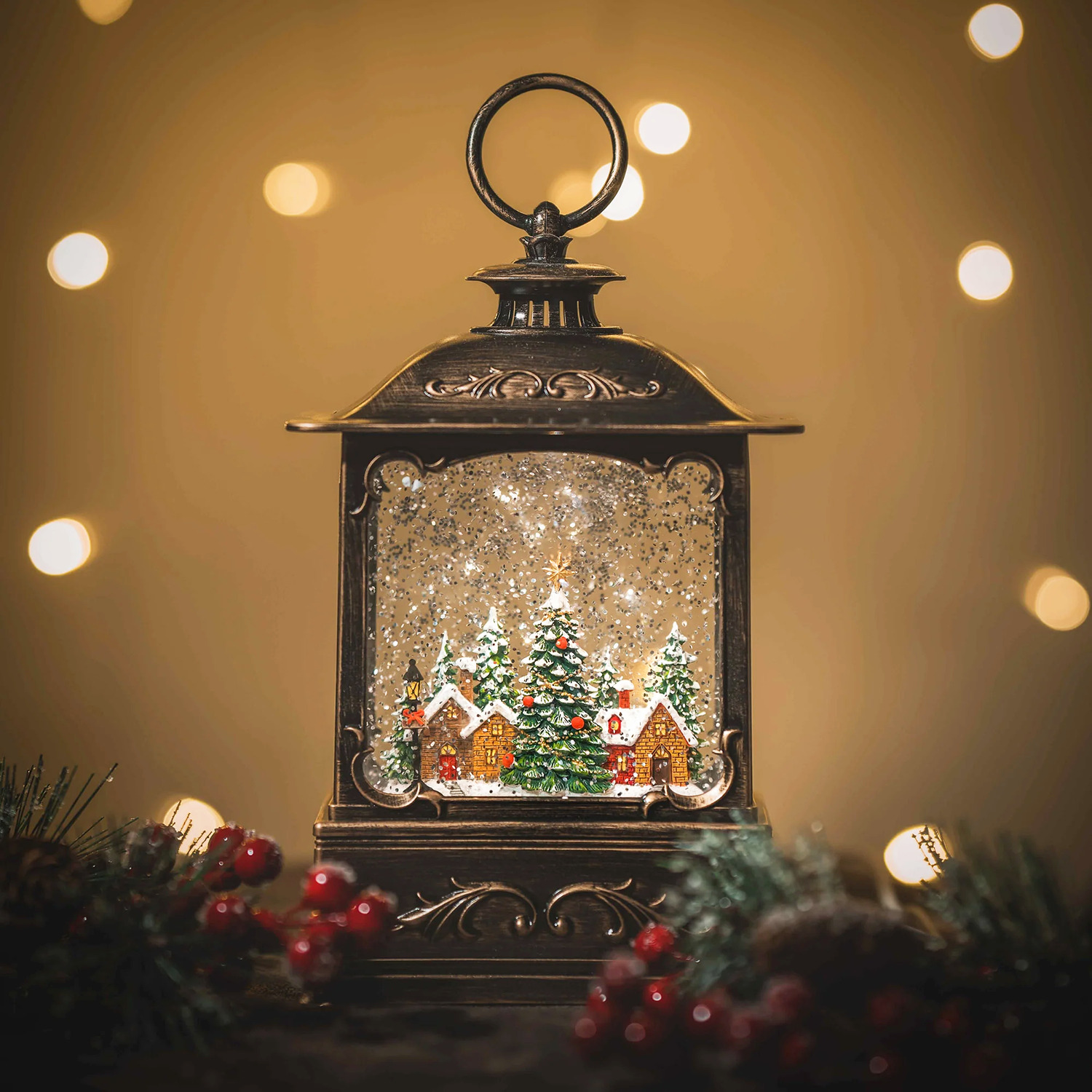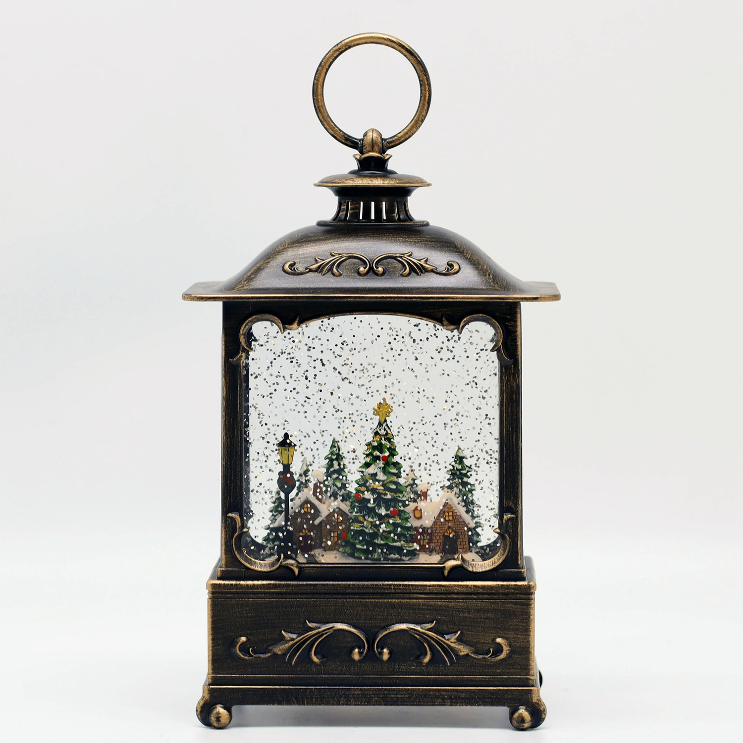 Small Snowing French Lantern with Xmas Town