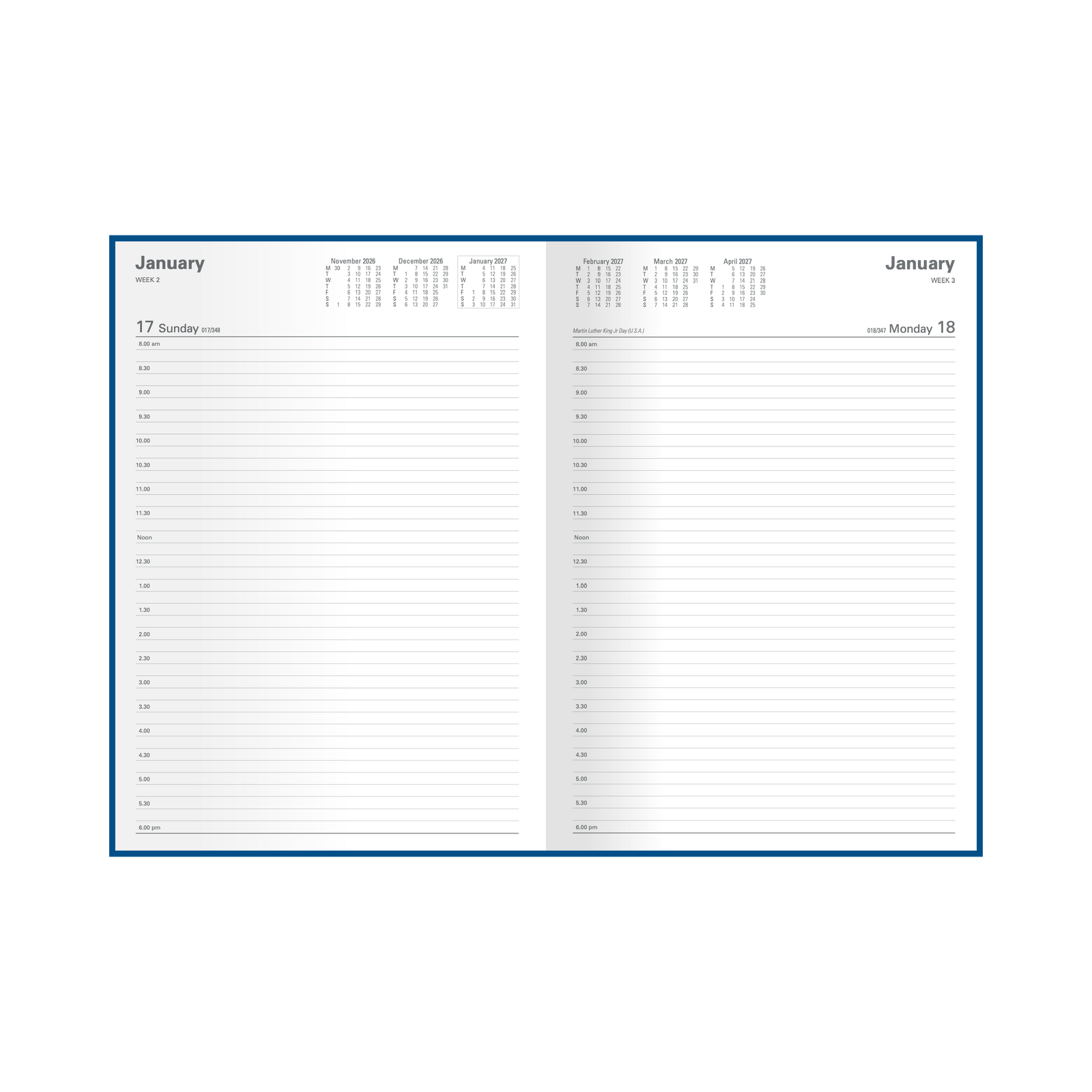 - Format: Day to Page (8am to 6pm, 1/2-hourly)