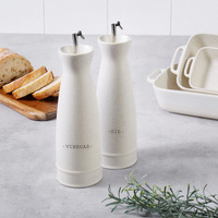 The Davis & Waddell Darley Oil & Vinegar Set, crafted from durable stoneware with an elegant speckled glaze, adds a unique touch to the kitchen. Made of high-quality durable and elegant stoneware with a speckled glaze, the unique and timeless look of these bottles pairs perfectly with a Mediterranean table.