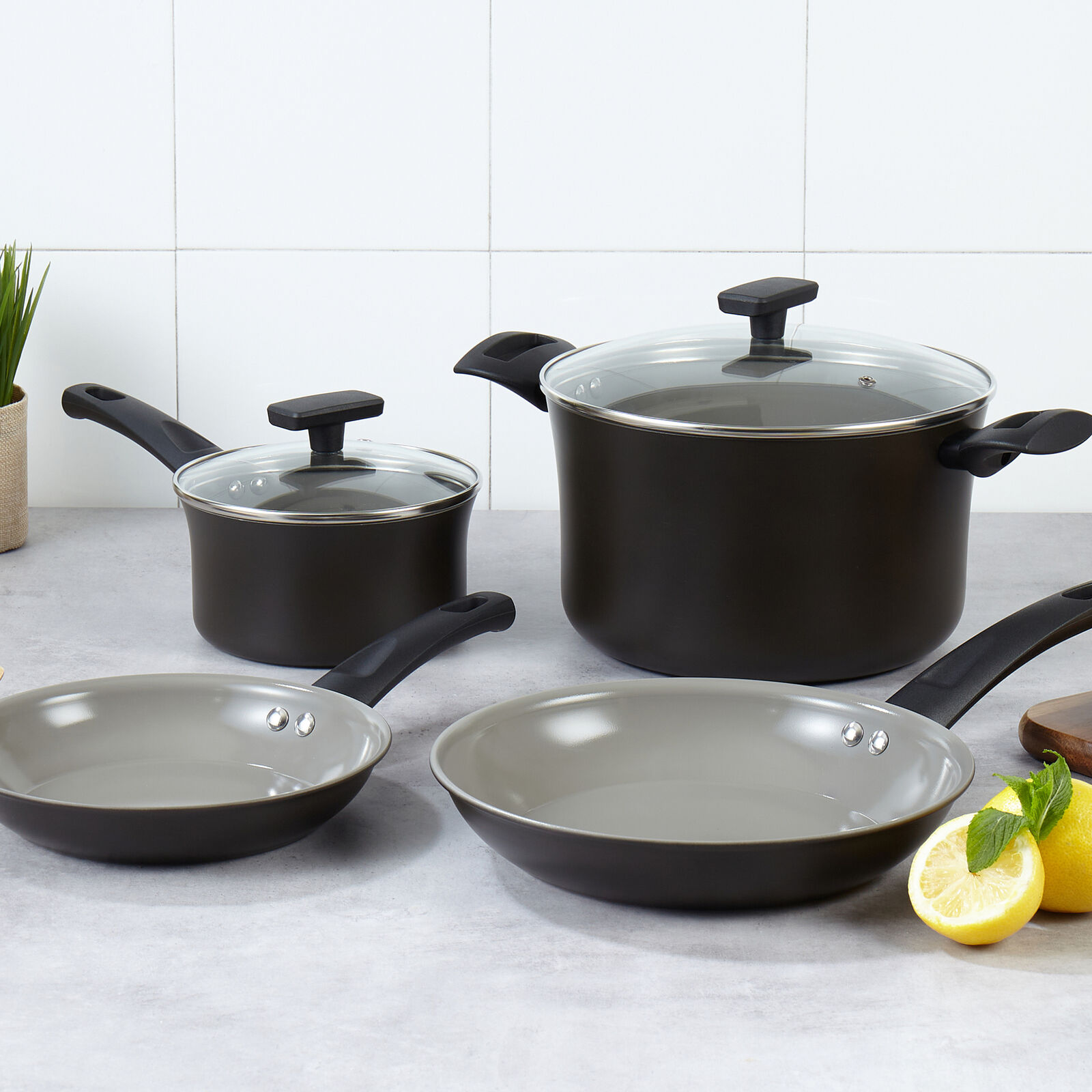 - Tempered glass lids with steam vent