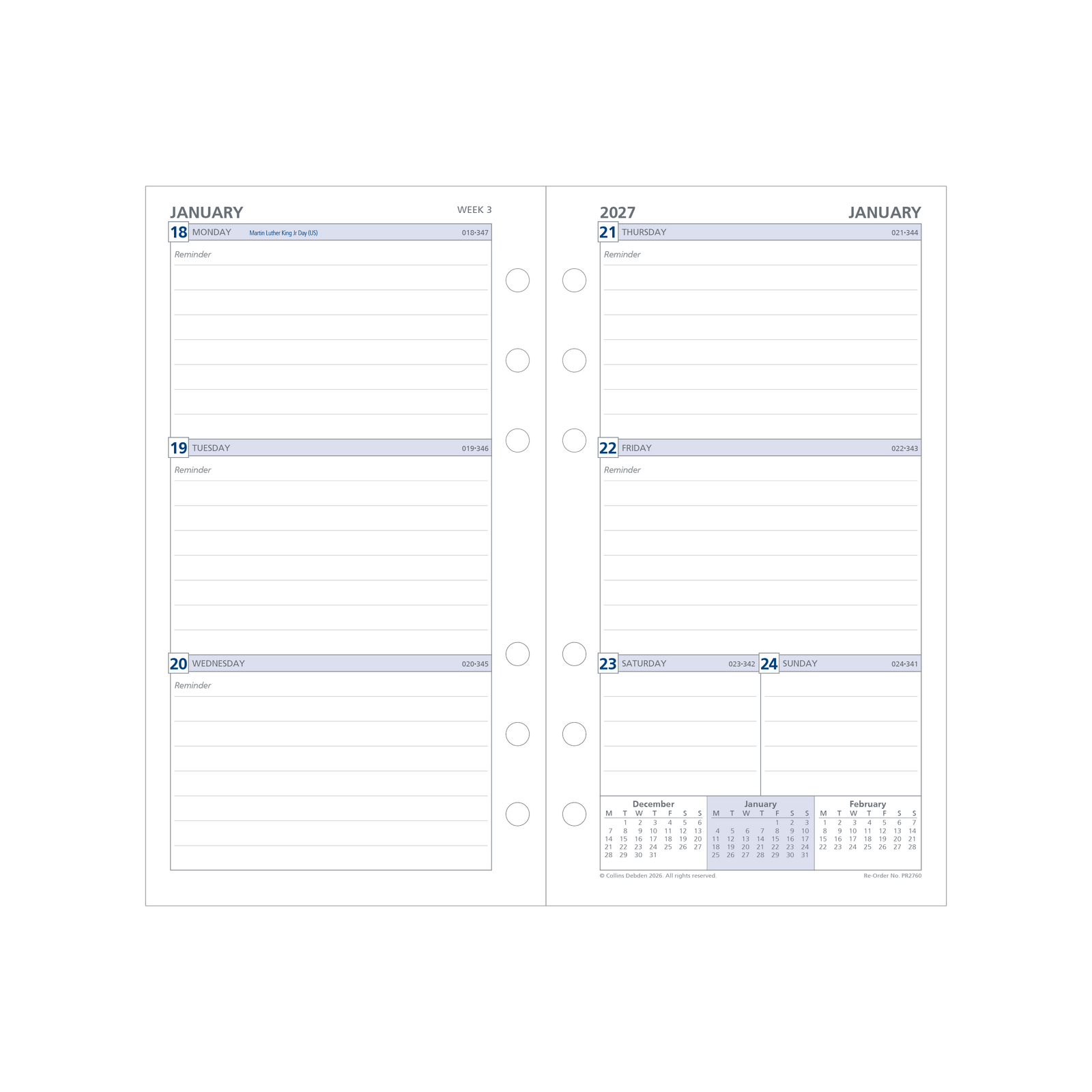 Debden DayPlanner 2026-2027 Financial Year Refill Personal Week to View White PR2760