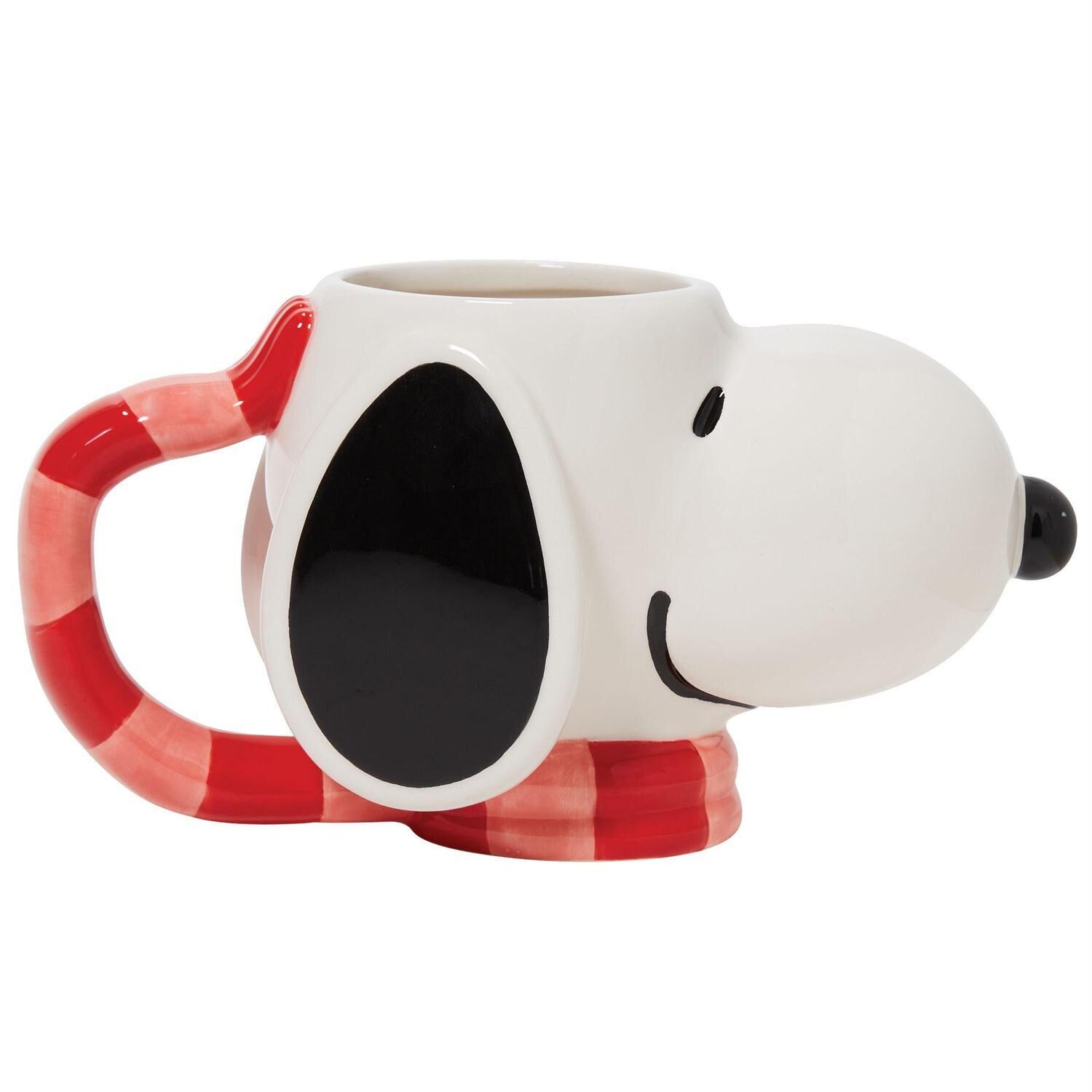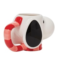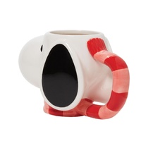 Enjoy a hot cup of cocoa or store all your candy canes in this fully sculpted hand painted ceramic mug of everyone's favorite Beagle, Snoopy. A festive holiday scarf forms the handle.