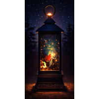 The illuminated Little Mermaid water lantern features beautiful artwork with Ariel and Ursula on all four sides. When turned on, an automatic water blower propels the sparkling glitter like magic creating a dynamic scene suitable for the Silver Screen.
