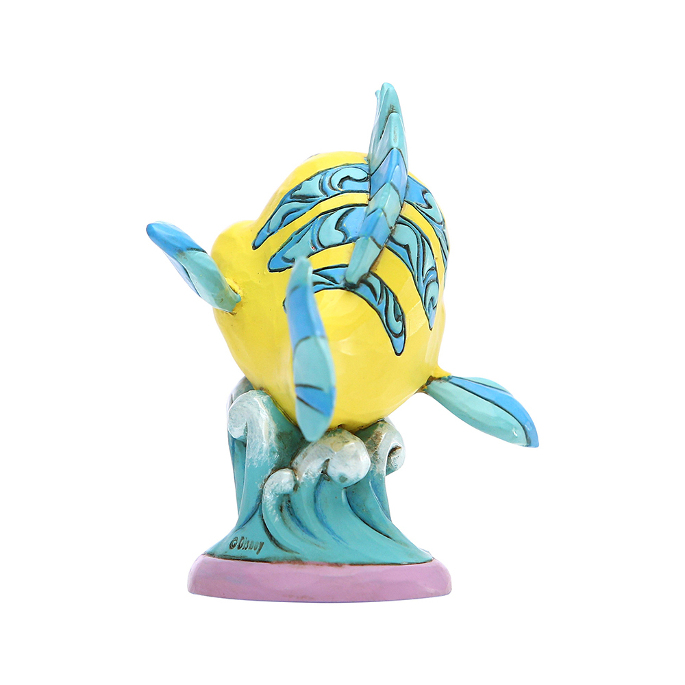Jim Shore’s unmistakable style combines classic Disney characters with designs inspired by folk art forms of quilting, rosemaling and tole painting. Forever cheerful, Flounder smiles brightly atop a crashing wave. His bright yellow and blue scales capture his positivity in this striking pose. This Jim Shore piece is full of personality and is a must-have for your Disney collection.