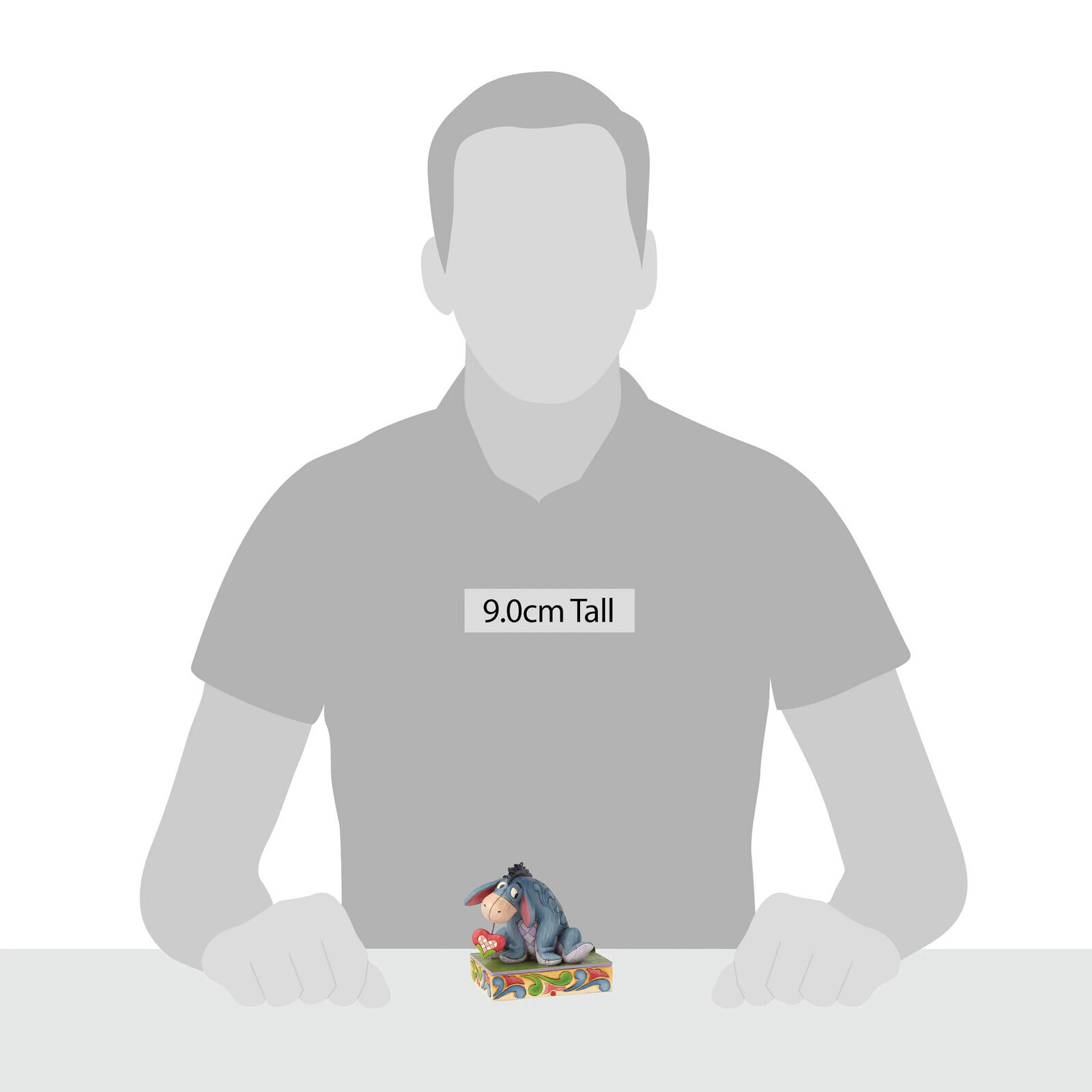 Jim Shore's unmistakable style combines classic Disney characters with designs inspired by folk art forms of quilting, rosemaling and tole painting. Sombre Eeyore tugs at heartstrings in this endearing Personality Pose. Sculpted from stone resin, the lovable donkey shyly presents a folk art-inspired Valentine, hand-painted in cheery springtime hues.