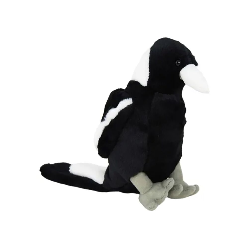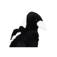 Celebrate one of Australia's most iconic birds with Elka's Magpie Plush with Sound Clip. This plush toy is beautifully crafted to showcase the distinctive black-and-white markings of the magpie and features a built-in sound chip that plays the magpie's authentic call at the press of a button.