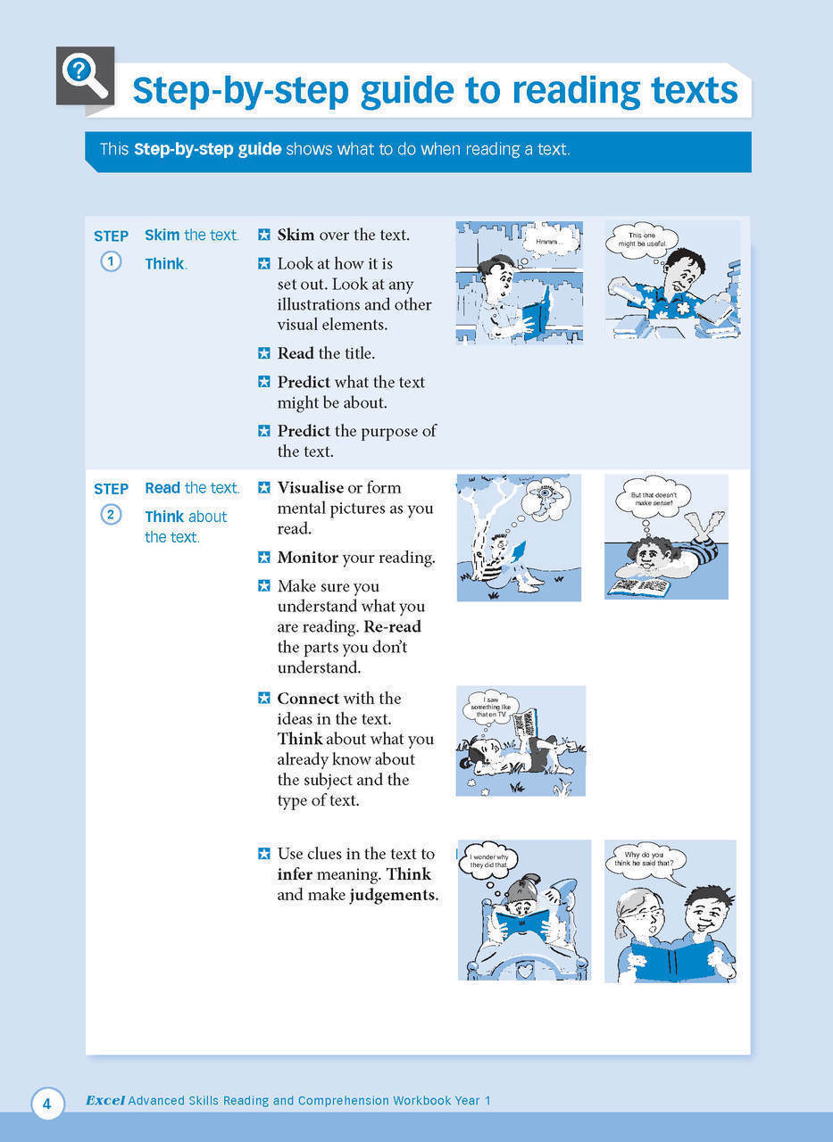 The Excel Advanced Skills Reading and Comprehension Workbooks for Years 1-6 will help students improve their reading and comprehension in English and in other subjects and become more competent, reflective and critical readers.