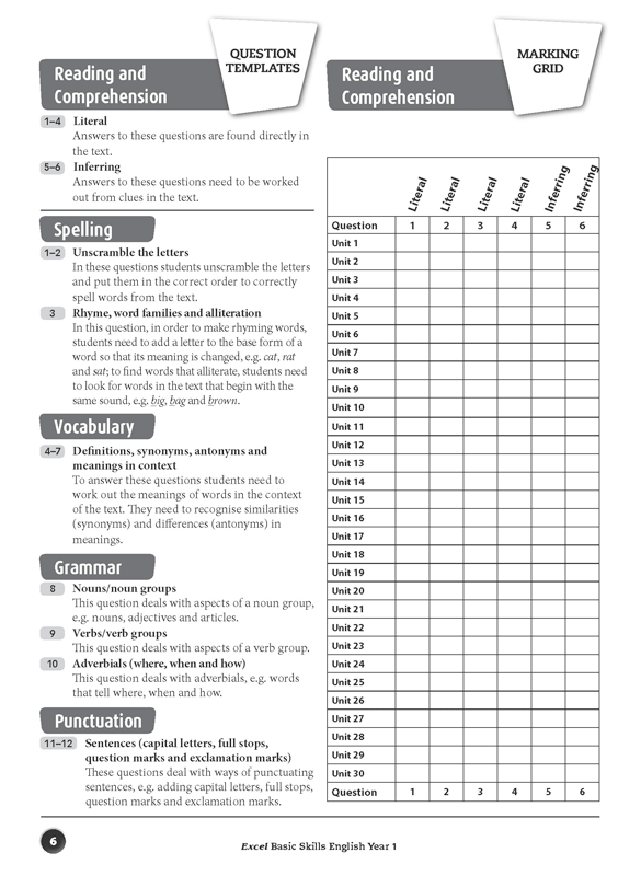 The aim of this book is to build basic skills in reading, comprehension, spelling, vocabulary, grammar and punctuation. The format of each unit is the same so that students become familiar with the requirements of each question, which become progressively more difficult as students work through the book. The sequence of units allows for regular practice that will reinforce the basic English skills taught in schools.