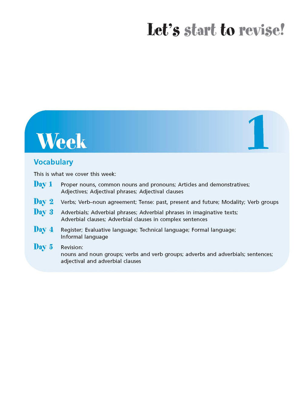 - Week 1 – Grammar and punctuation