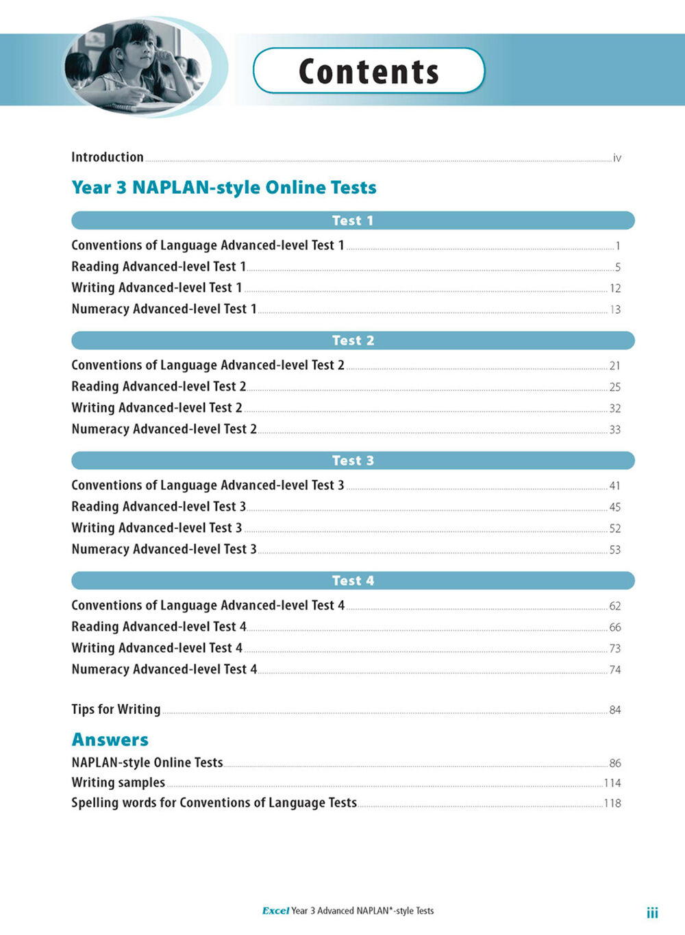 - 4 Practice tests each for Numeracy, Conventions of Language, Reading and Writing
