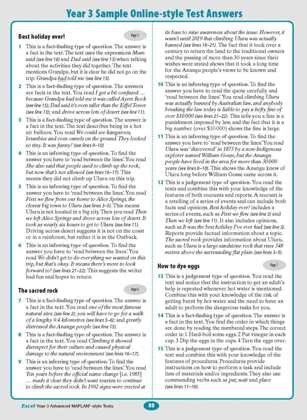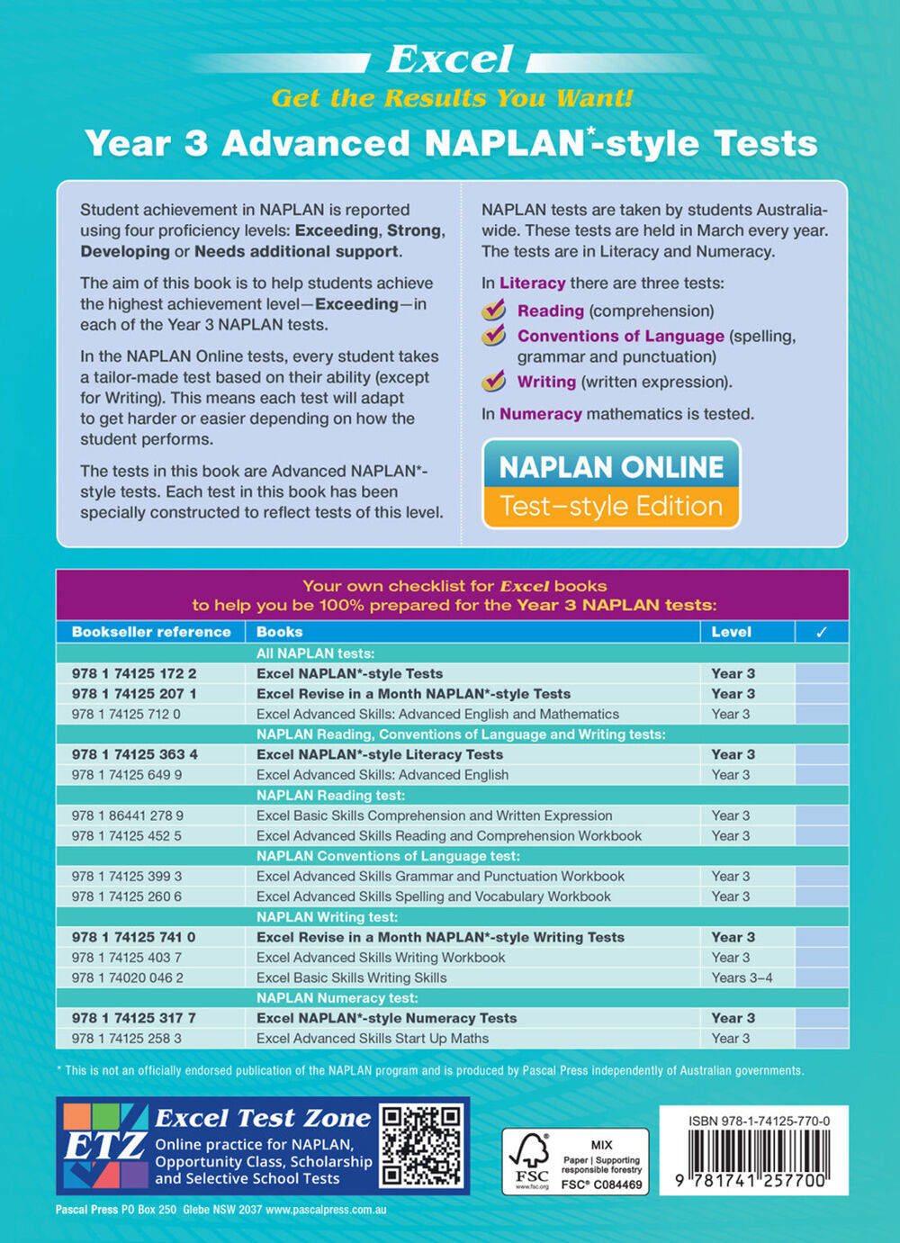 The aim of this book is to help students achieve the highest achievement level, exceeding in each of the Year 3 NAPLAN tests.