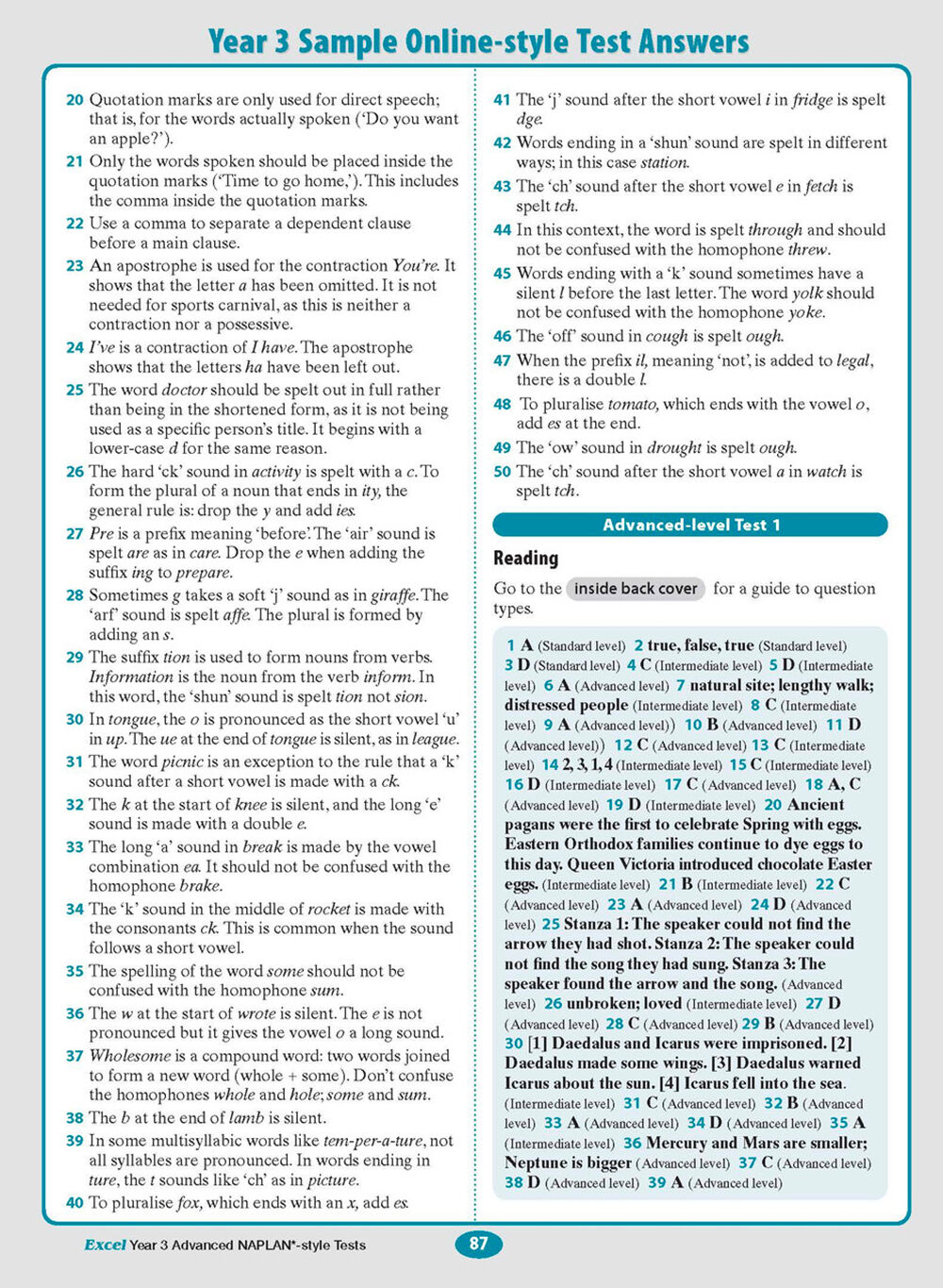 Excel Year 3 Advanced NAPLAN*-style Tests includes: