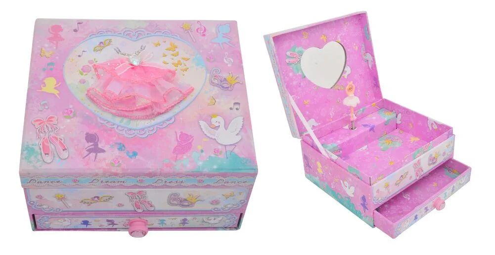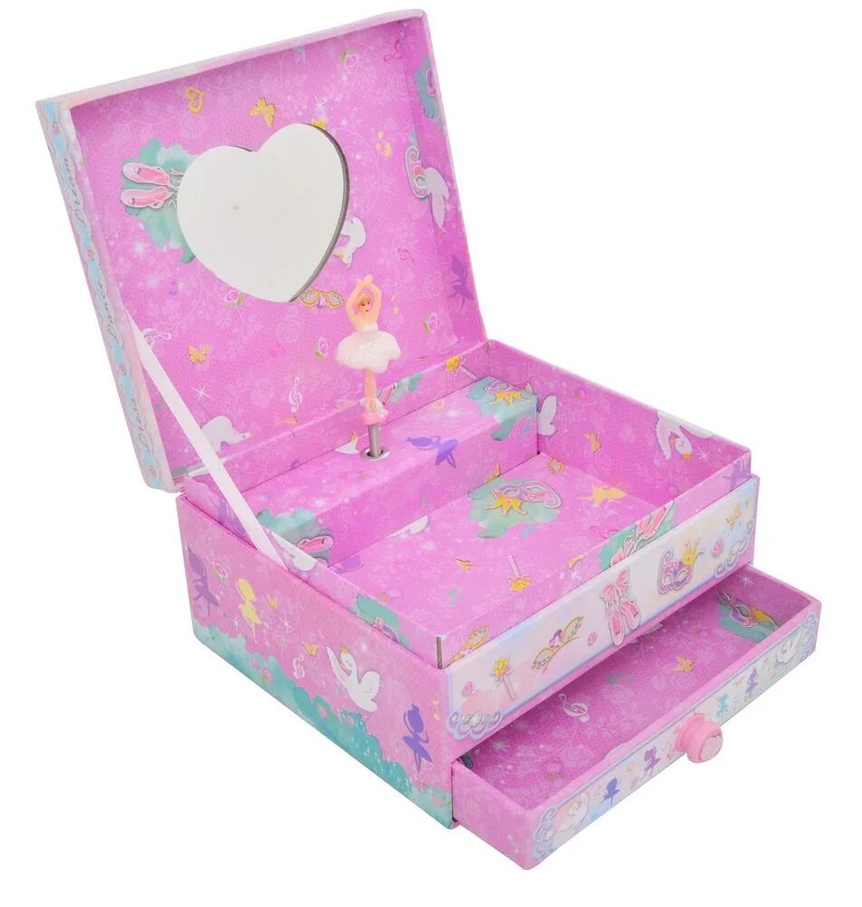Keep jewellery organised in this elegant musical box with a handy drawer. Featuring a graceful ballerina that spins to a sweet tune, it's both practical and enchanting, perfect for gifting.
