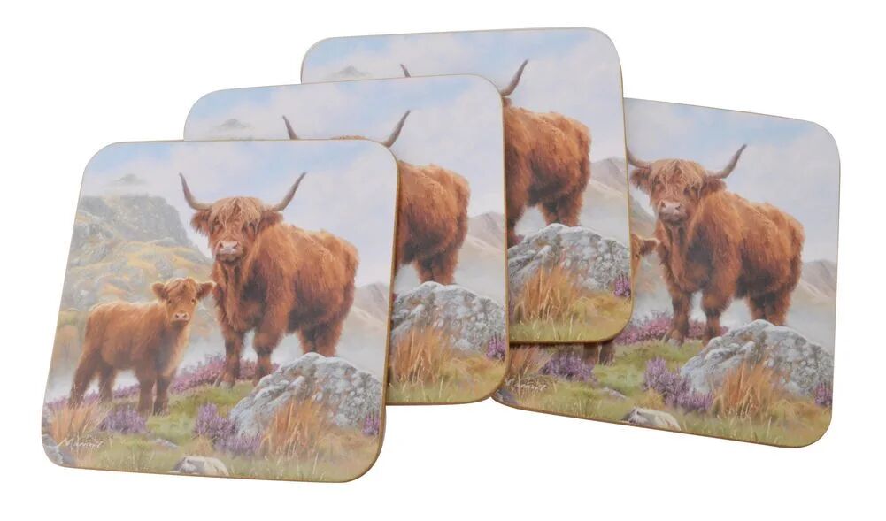 Protect your surfaces in style with the Macneil Highland Cow Coasters. Durable and decorative, they bring a rustic touch to any home.
