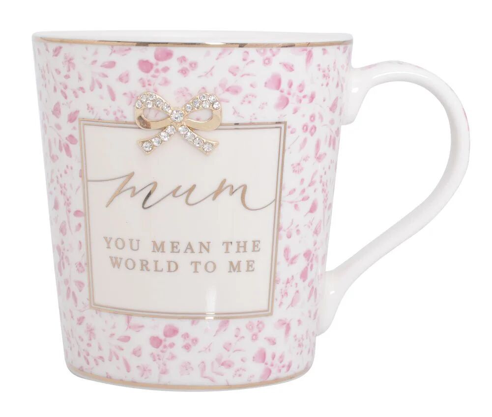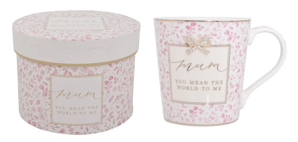 Let Mum know how much she's loved with this elegant floral mug. Featuring the touching message "Mum You Mean The World To Me," it's a thoughtful keepsake she can enjoy every day.