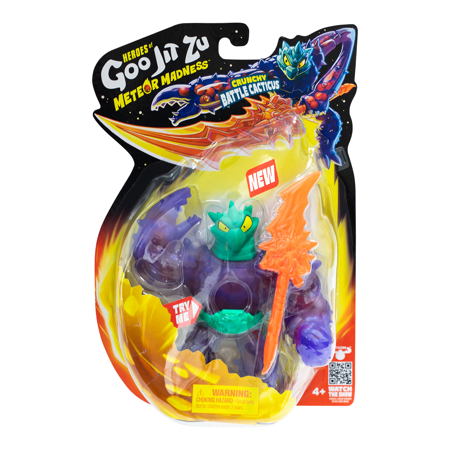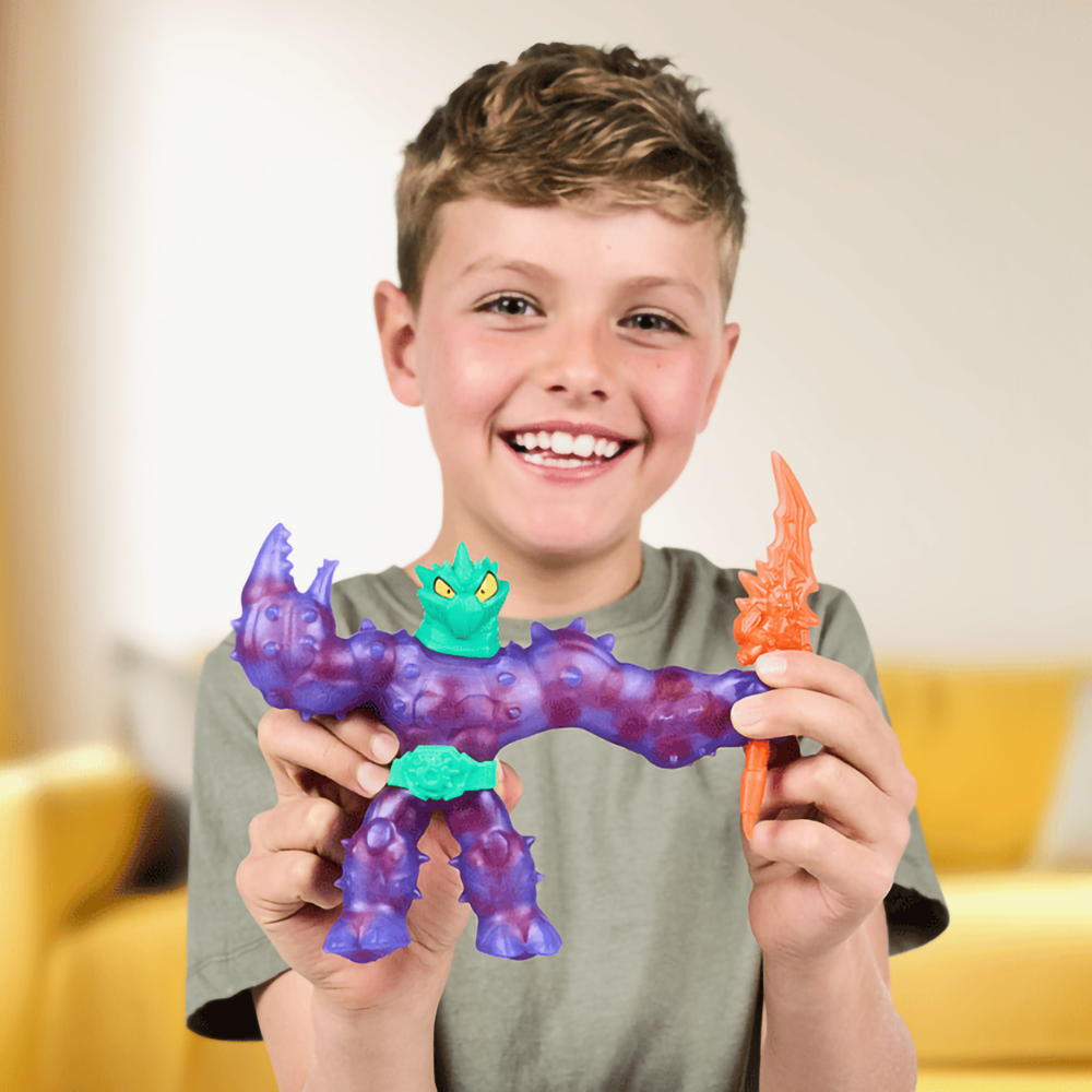 The Heroes of Goo Jit Zu Meteor Madness Battle Cacticus is ready to release his wrath with his new thumping Thunder Spear. Battle Cacticus can stretch up to 3 times his size, perfect for letting loose his action-packed moves. There are 4 other Meteor Madness figures to collect: Battle Blazagon, Battle Thrash, Shredz, and Ultra Rare Lava Rhinostone. Who will triumph in an all-out, meteor-powered clash of strength and skill? The new Meteor Madness Battle Cacticus takes playtime to the extreme!