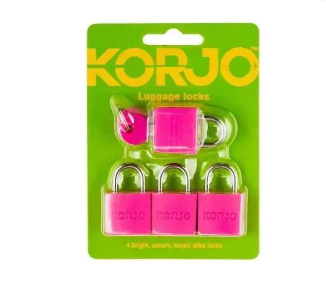 Korjo Luggage Locks pack of 4 keyed alike, colourful locks.