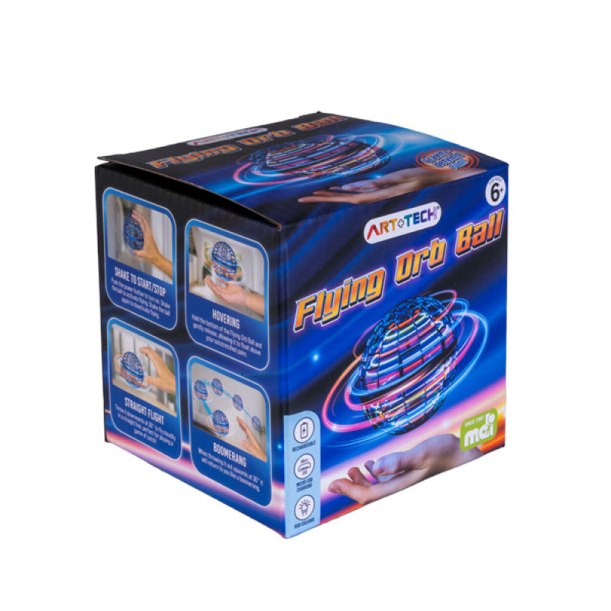 Prepare for lift-off with the Flying Orb Ball! This hand-controlled hover ball turns any space into a gravity-defying playground. Experience endless possibilities: boomerang it to yourself or throw to your friends! Plus, the mesmerising LED lights make it perfect for nighttime games. Ready? Give it a spin!