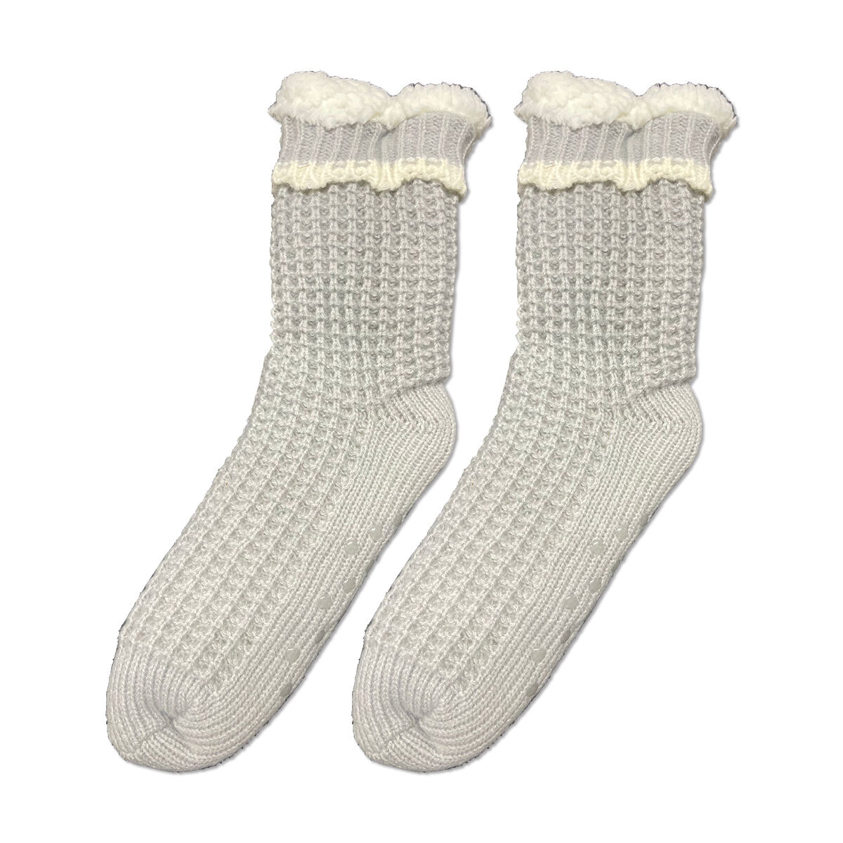 When socks aren't enough and slippers are too much... Nuzzles Sherpa Socks will be with you every step of the way. Extra snuggle fleece lined, these are socks to warm your sole! No longer will you be taunted by freezing feet, these beauties have everyone protected. Non-slip silicon soles and easy care machine washable, these unique designs will have you hanging around the house in style.
