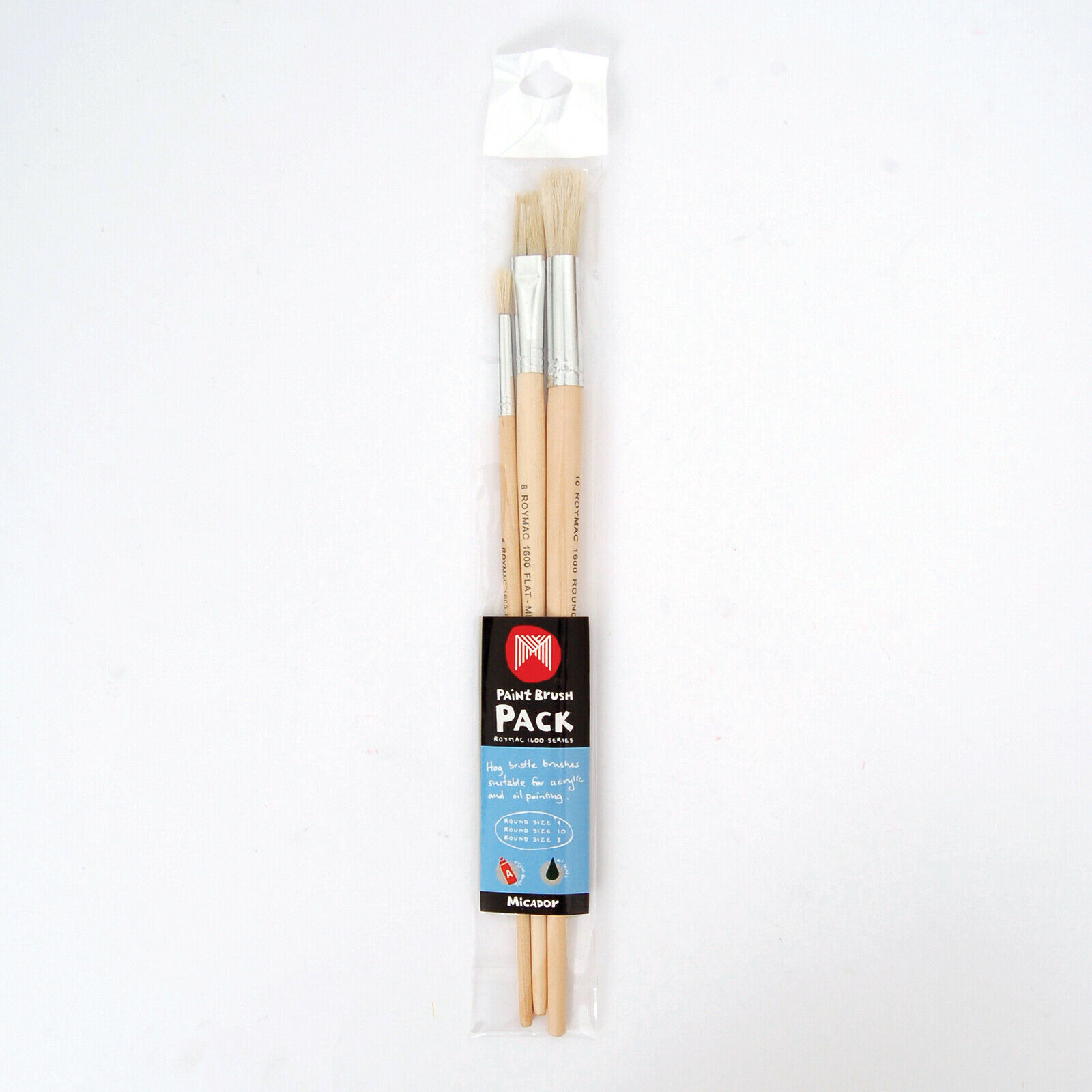 Brush pack with three economical, all-purpose brushes for student and beginner painters.