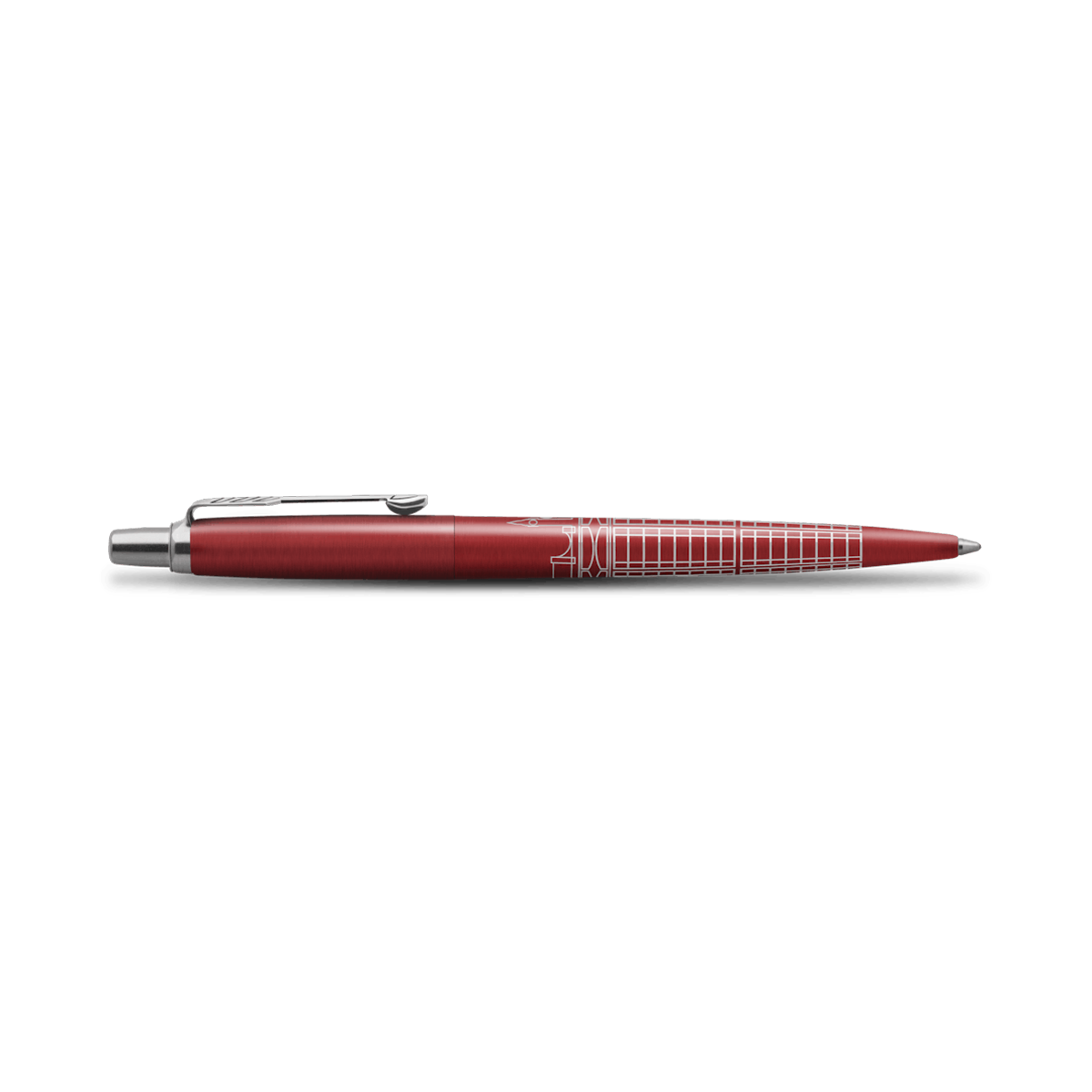 - The expertly lasered skyline design and Red lacquered finish are fine examples of the Parker craftsmanship that gives Jotter a level of sophistication expected from high-end pens.