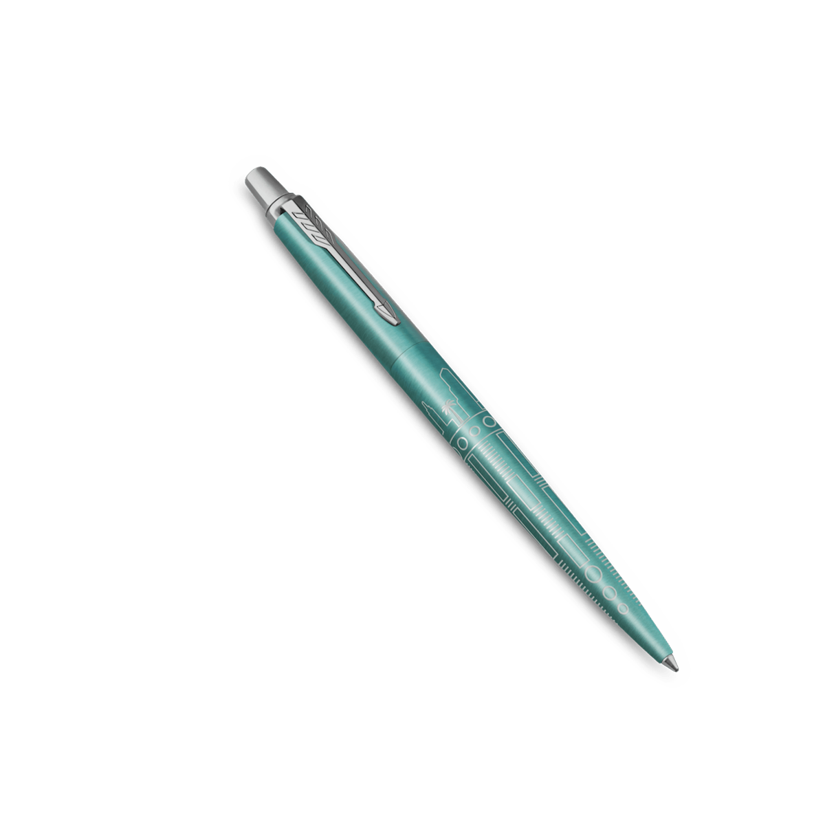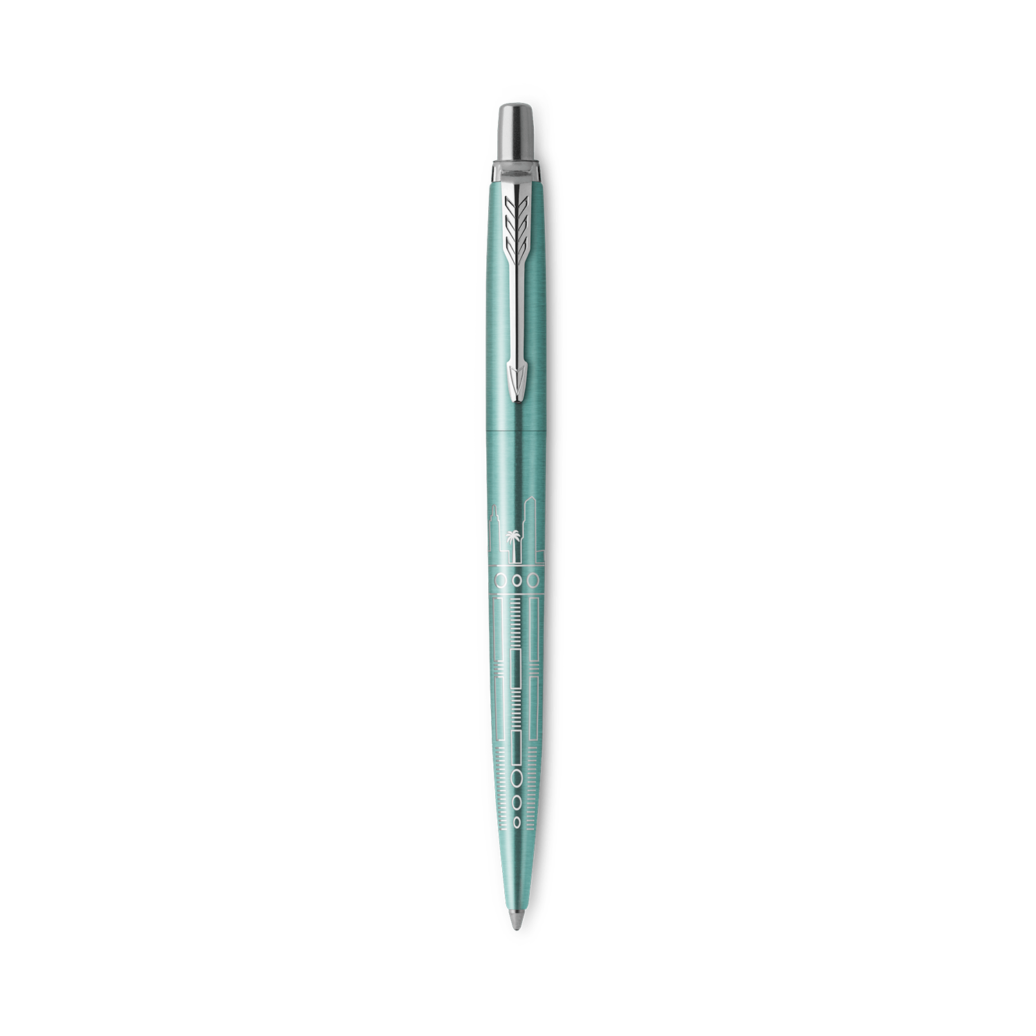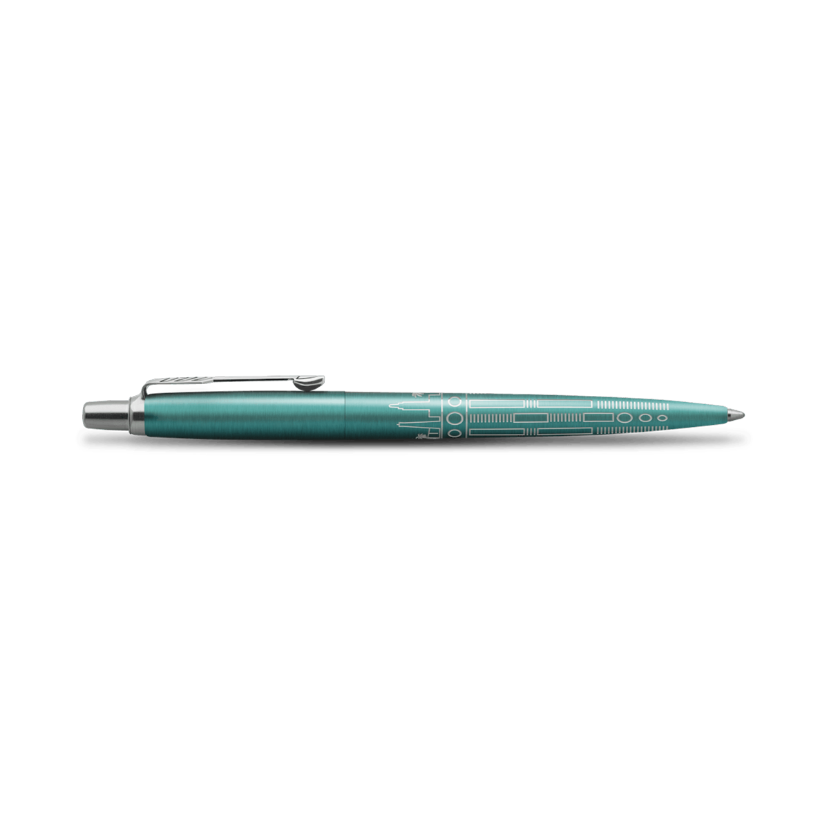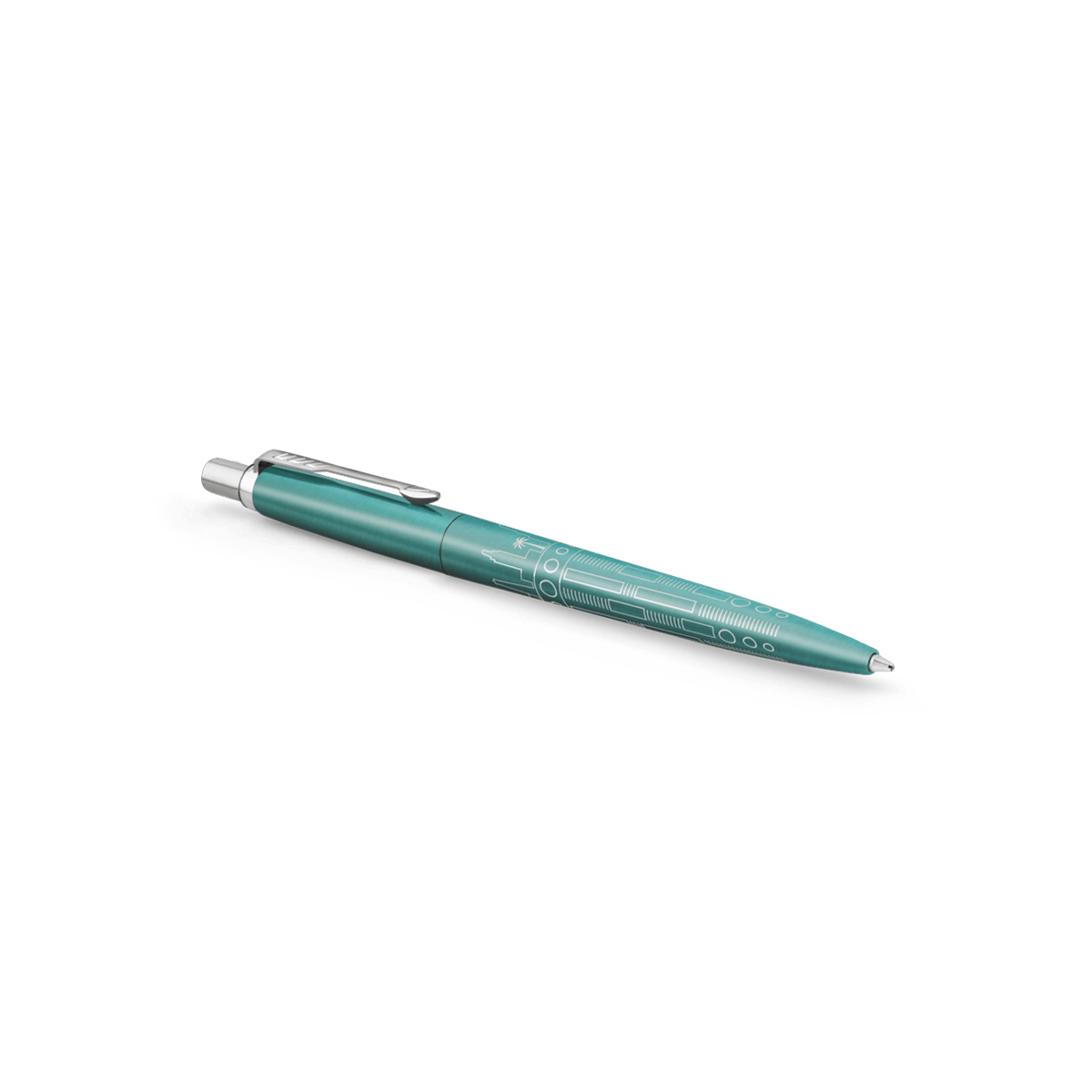 - The expertly lasered skyline design and Turquoise lacquered finish are fine examples of the Parker craftsmanship that gives the Jotter a level of sophistication expected from high-end pens.