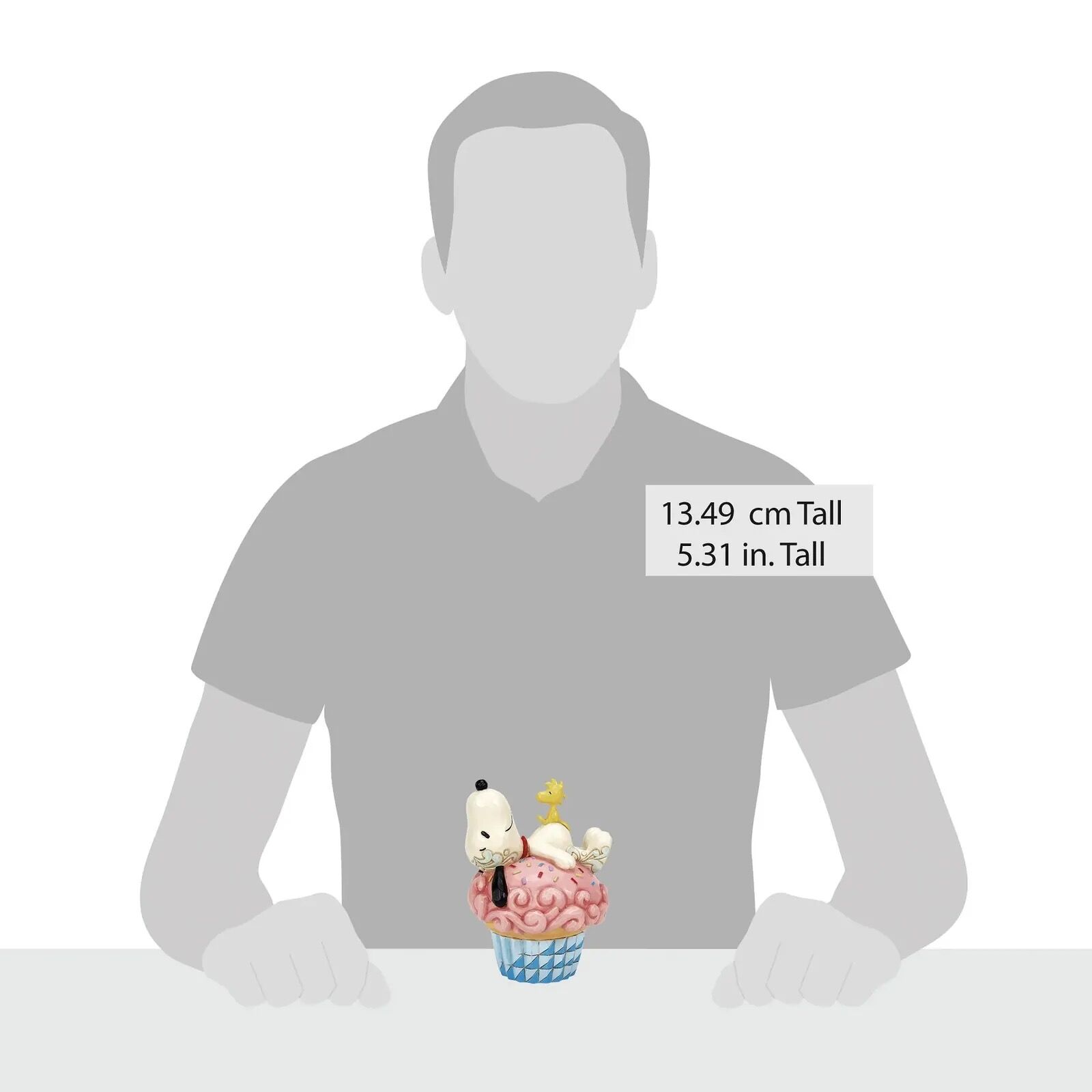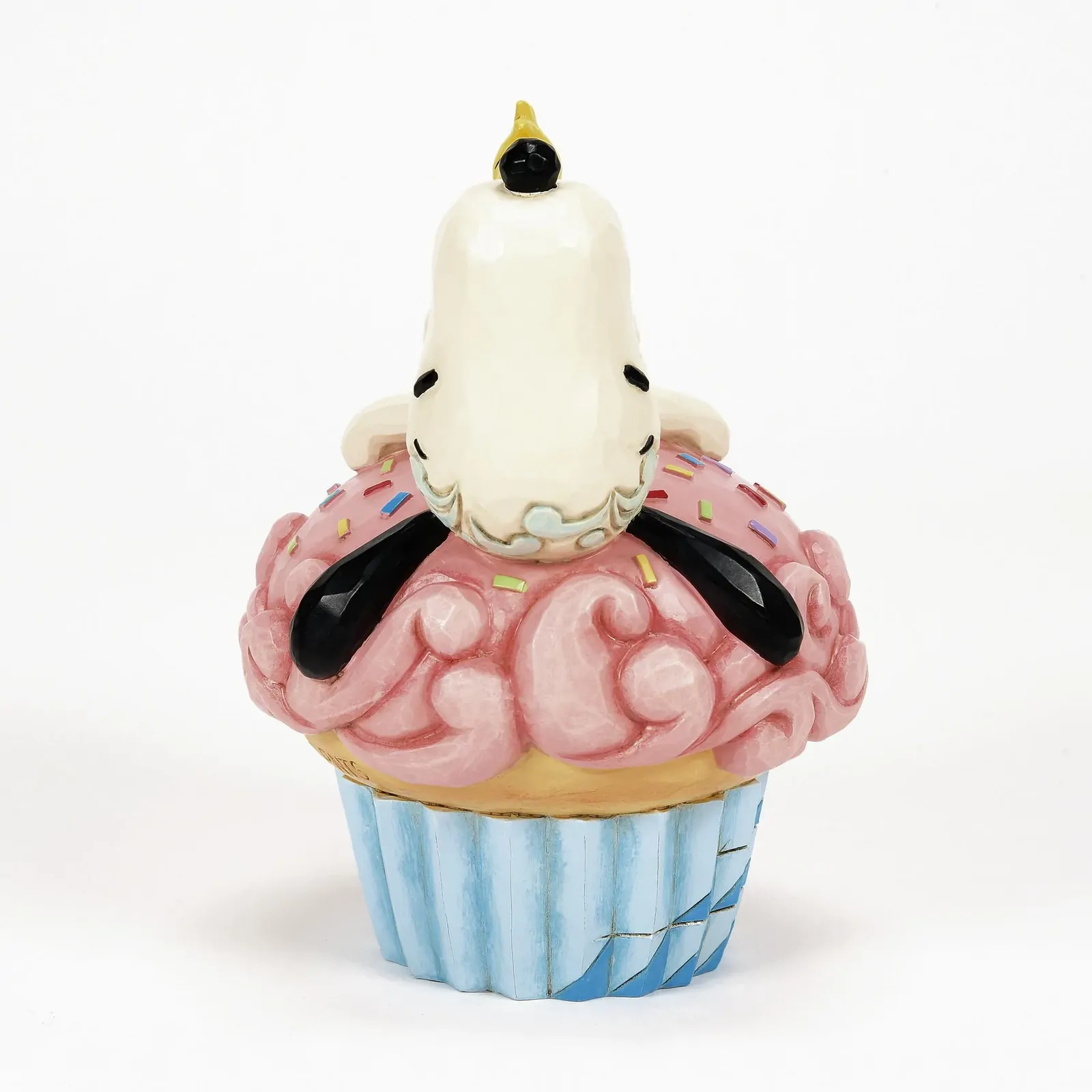 In Jim Shore's charming design, Snoopy takes a cozy nap atop a large, sprinkled pink cupcake, complete with intricate rosemaling details and tempting icing. Adding to the sweetness, Woodstock joins the slumber party on top of Snoopy.