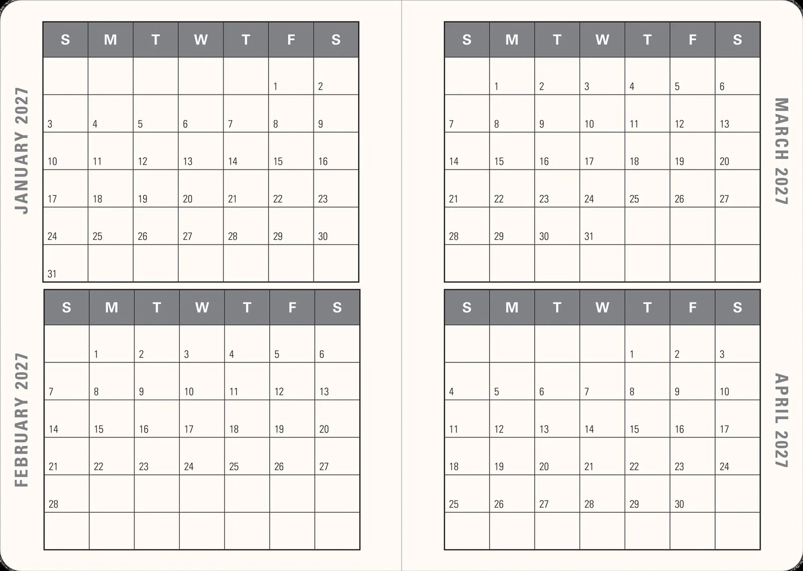 - Separate monthly pages provide helpful overviews.