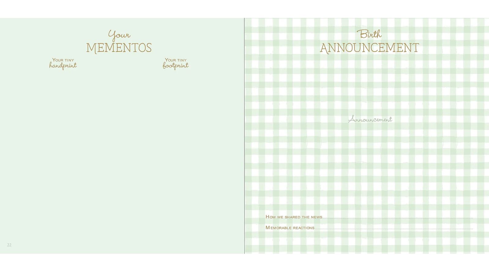 - Baby book measures 25.8cm wide x 24.8cm high.