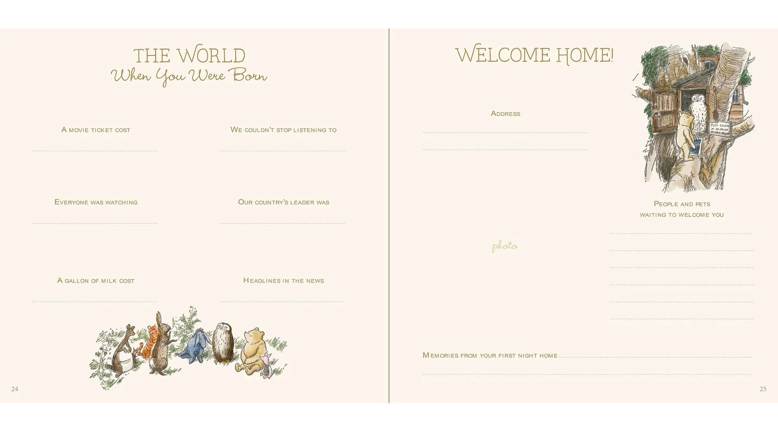 Cherish special milestones from your child's first 5 years within the pages of this adorable keepsake album, featuring original illustrations by E. H. Shepard of A. A. Milne's Winnie-the-Pooh. The perfect gift for expectant parents!