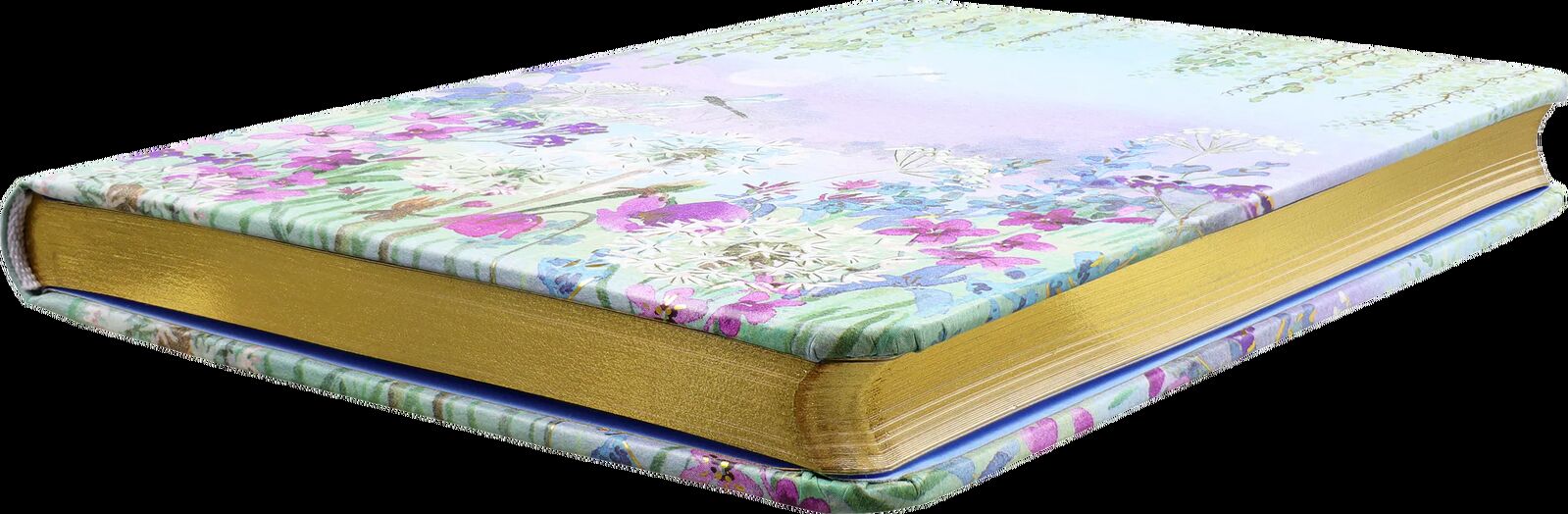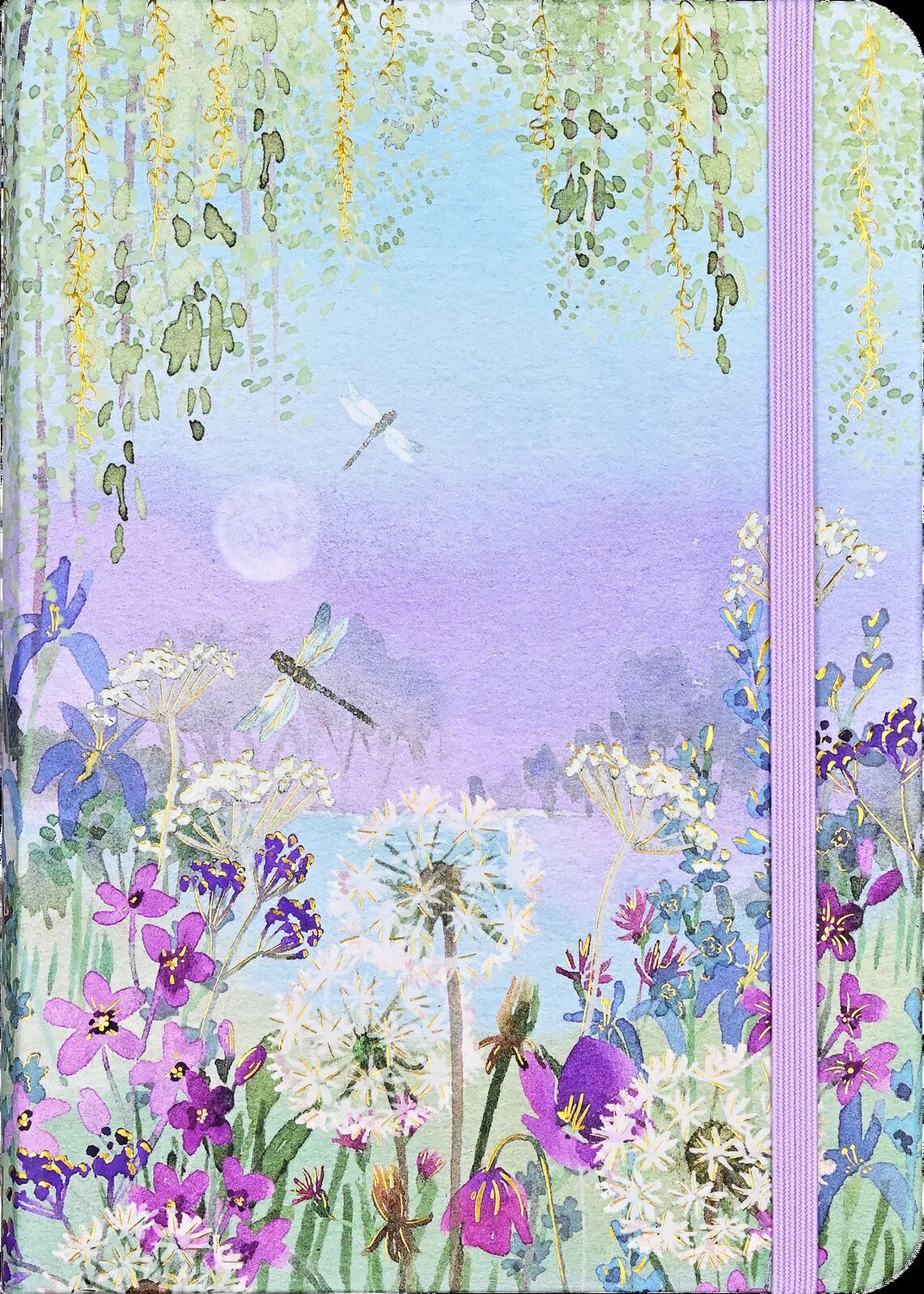 A moonlit meadow, with dragonflies, dandelions, and vibrant florals, graces the covers of this elegant Dragonflies & Dandelions Journal.