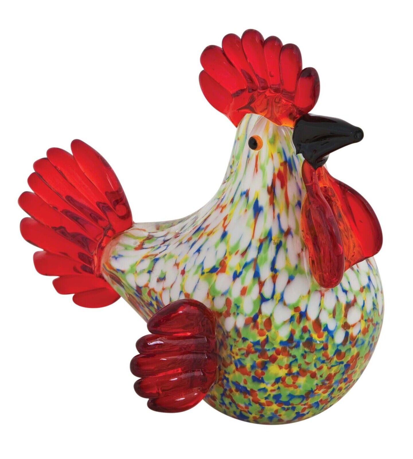 Russell Collection Coloured Art Glass Ornament 16cm Chicken, Whitehill CCG CHKC