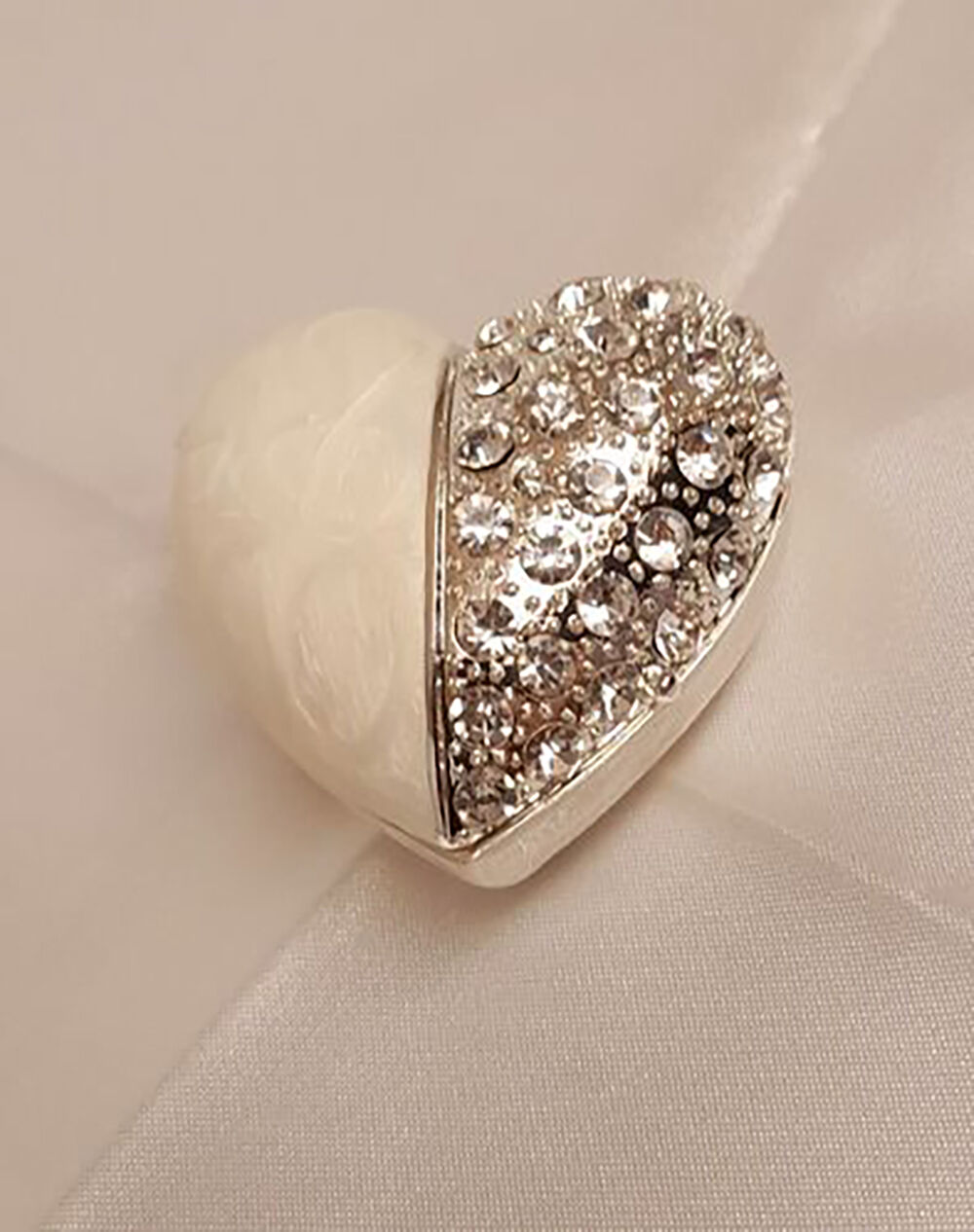 Celebrate love and elegance with this dazzling keepsake designed to store your treasured jewellery in style. Shaped like a heart and adorned with sparkling diamante accents, this exquisite box combines romance with refined craftsmanship, making it a perfect gift for anniversaries, birthdays, or special occasions.