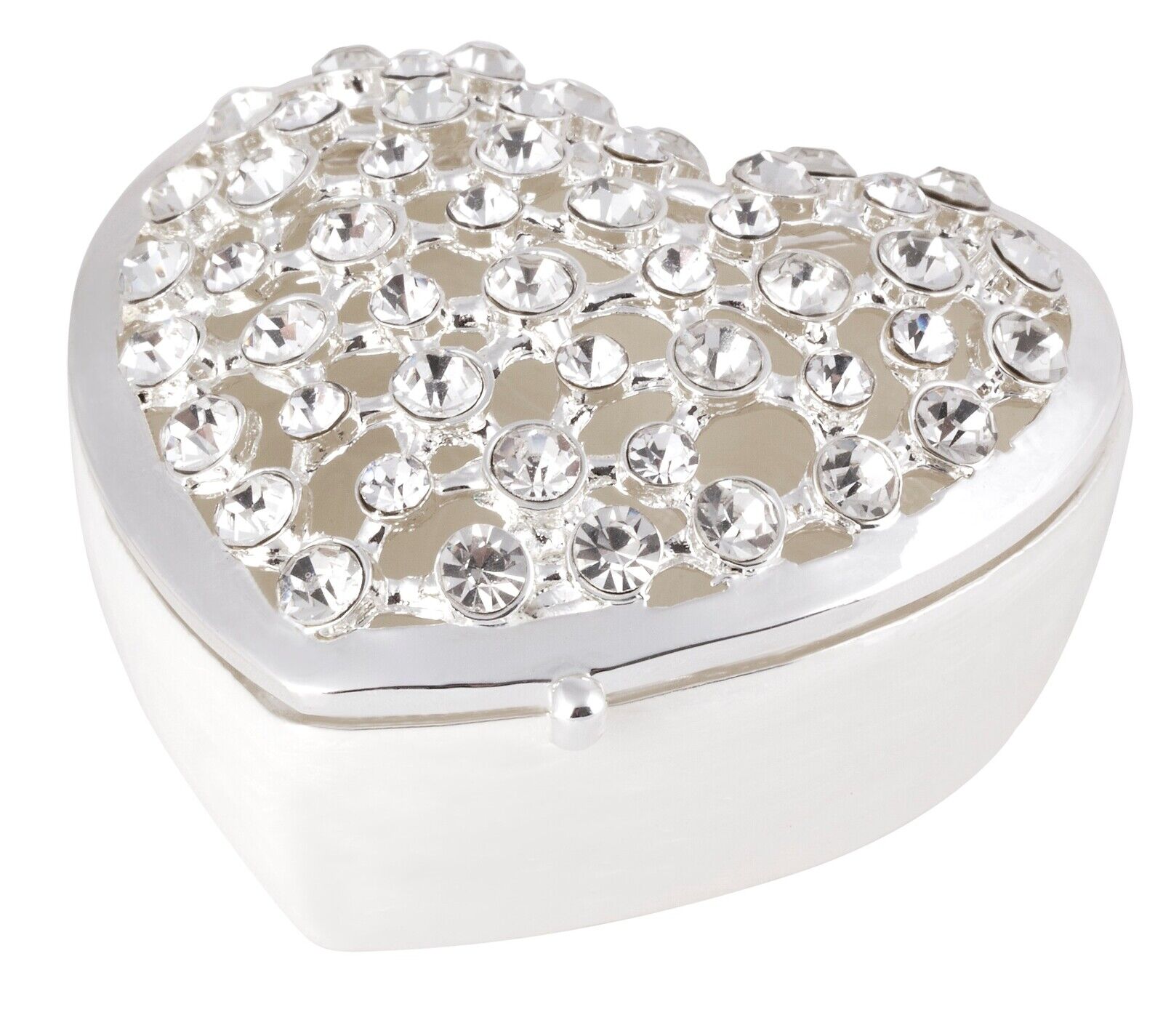 Russell Collection Jewellery Box 5cm Heart with Rhinestone, Whitehill HR ECYH