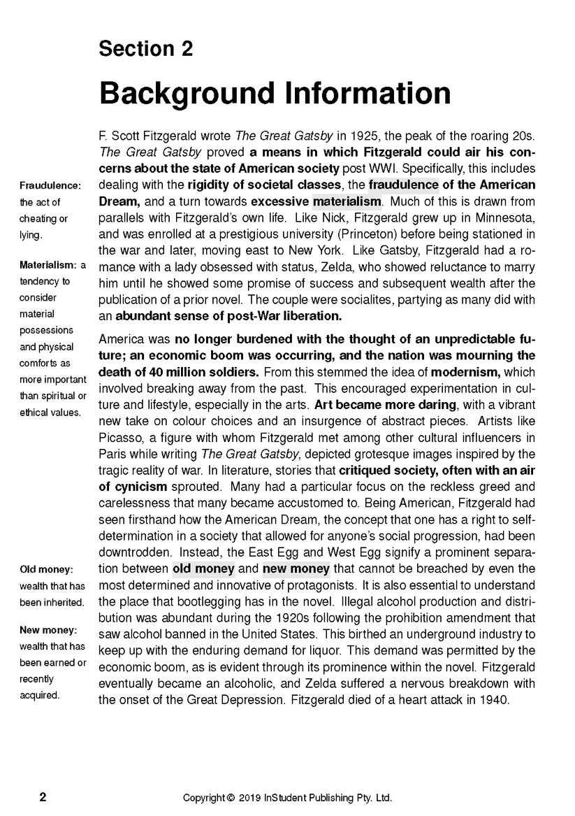 This The Great Gatsby Text Guide contains:
