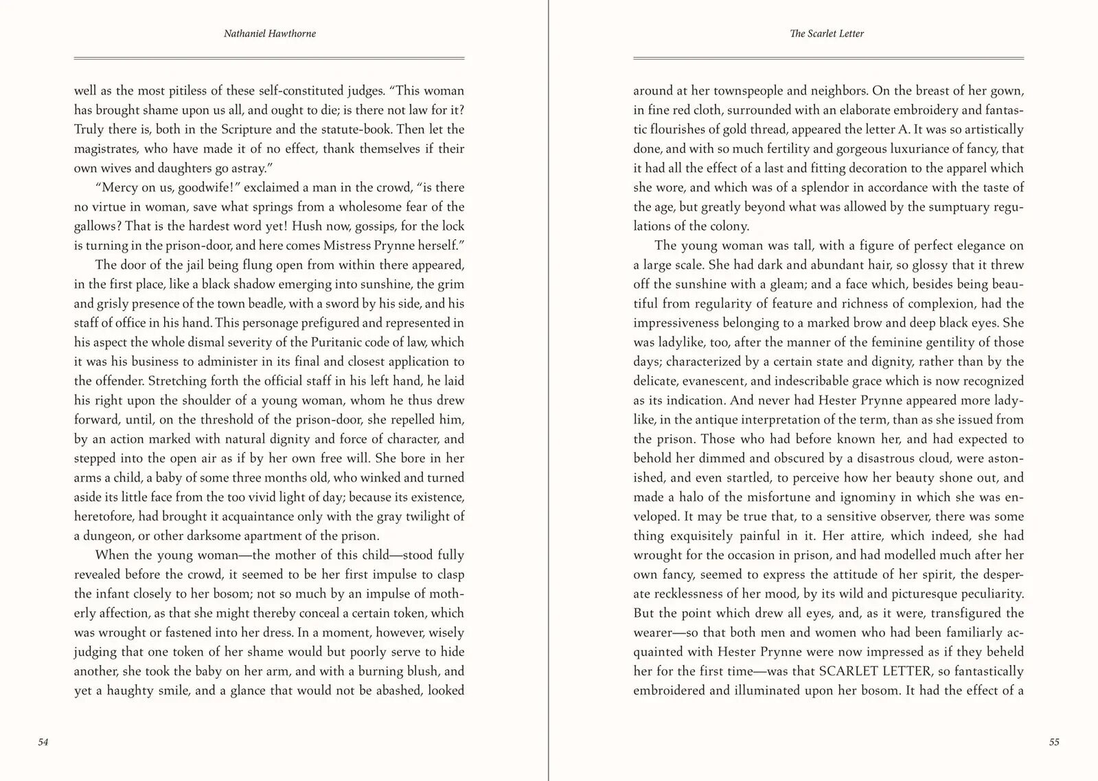 The finely embroidered letter ''A'' on Hester Prynne's breast is a mark of adultery. In isolation, she faces questions of sin, forgiveness, and redemption. But does she face them alone? Rediscover Nathaniel Hawthorne's classic in this elegant Masterpiece Library Edition.
