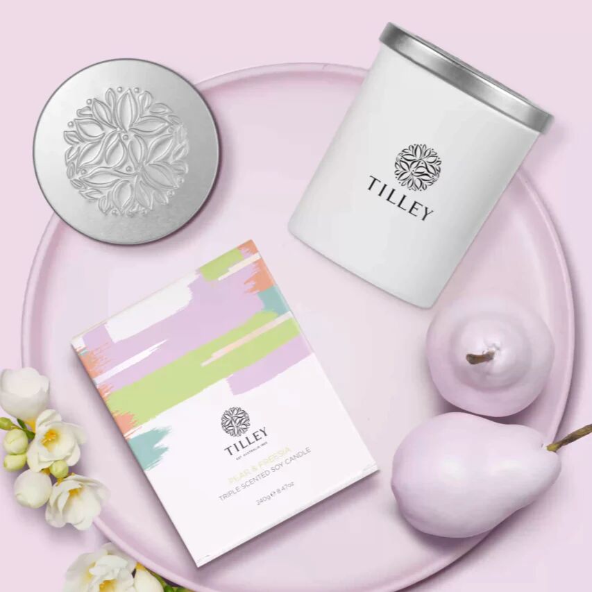 Tilley Classic White Triple Scented Soy Candle - Pear & Freesia