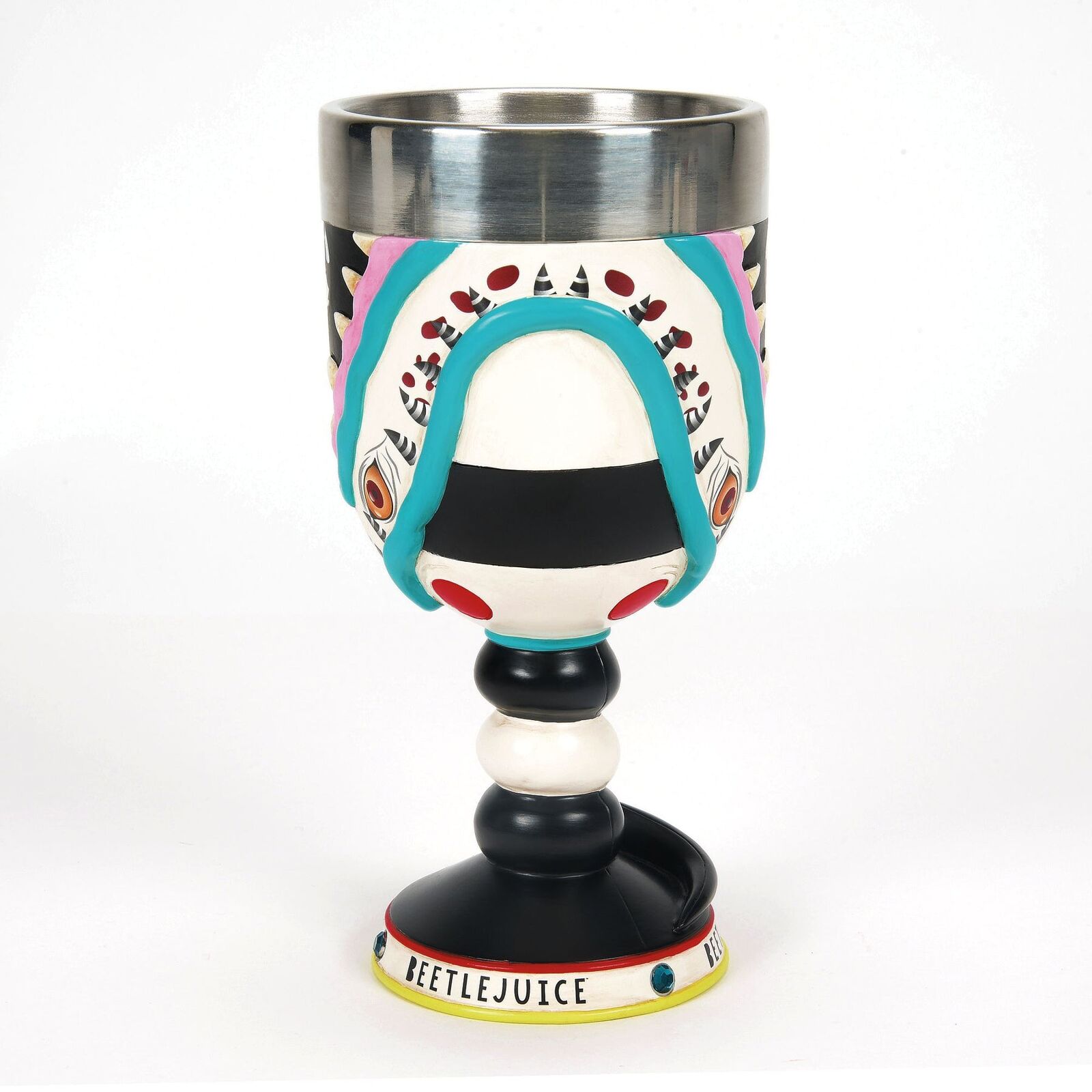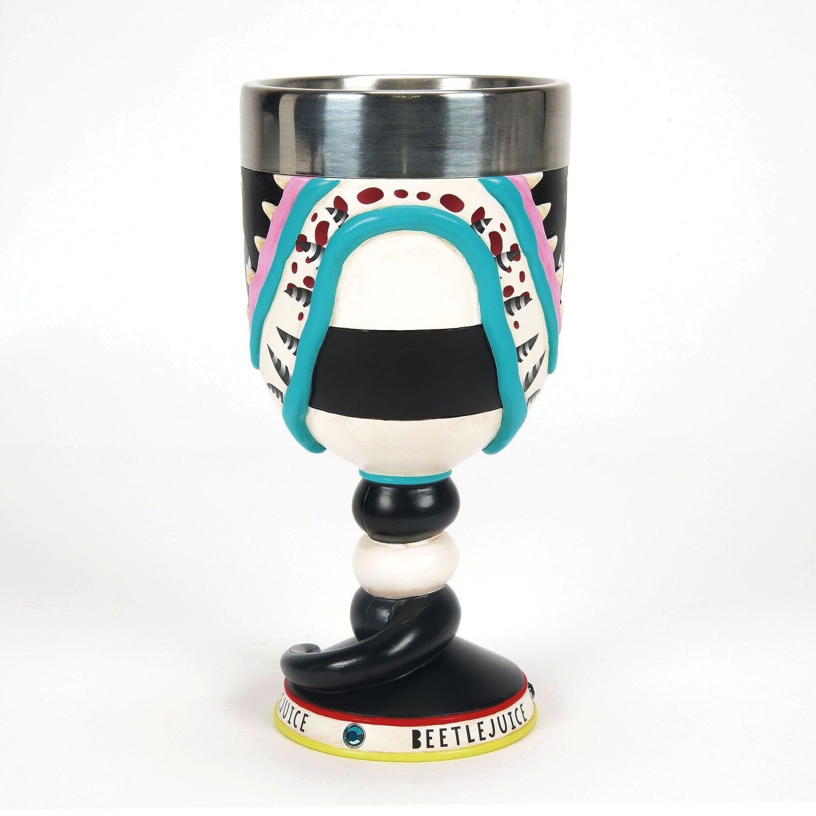 This BEETLEJUICE Sandworm Goblet is hand painted and decorated with faux gems for added bling, and has stainless steel insert for easy hand washing.
