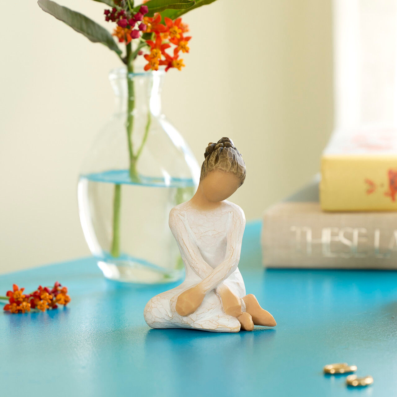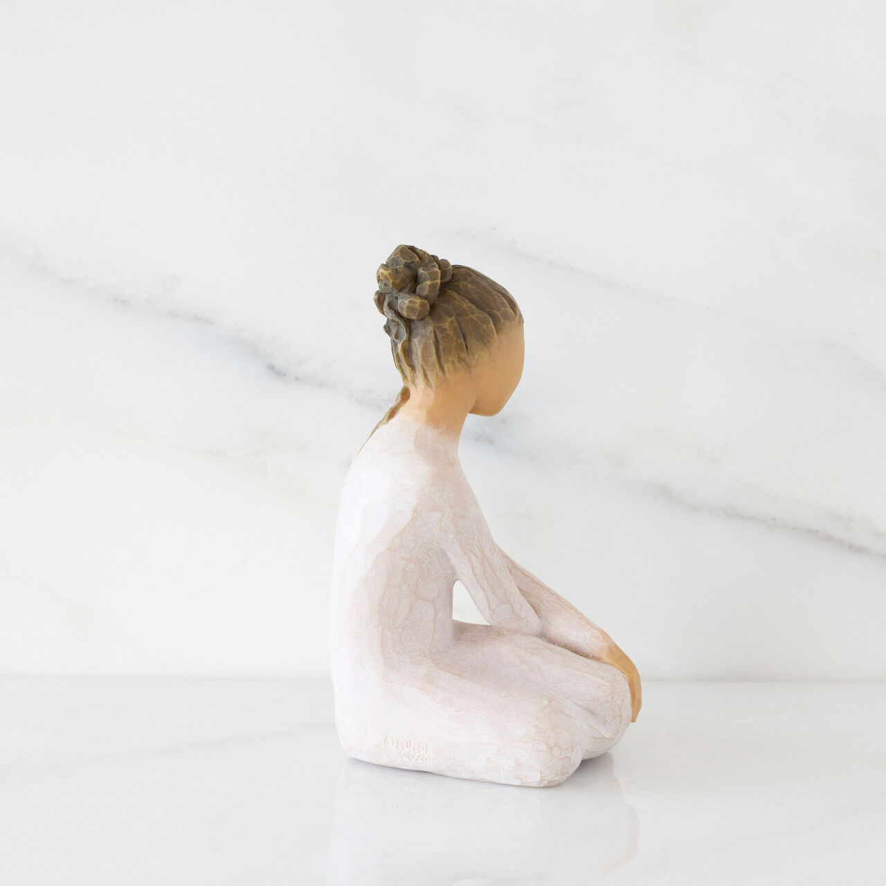 A seated figure of calm reflection. A gift to say to someone (without words) "be kind to yourself; take a moment for yourself". A gift of support and encouragement. A reminder to prioritise compassion, self-care and wellness.