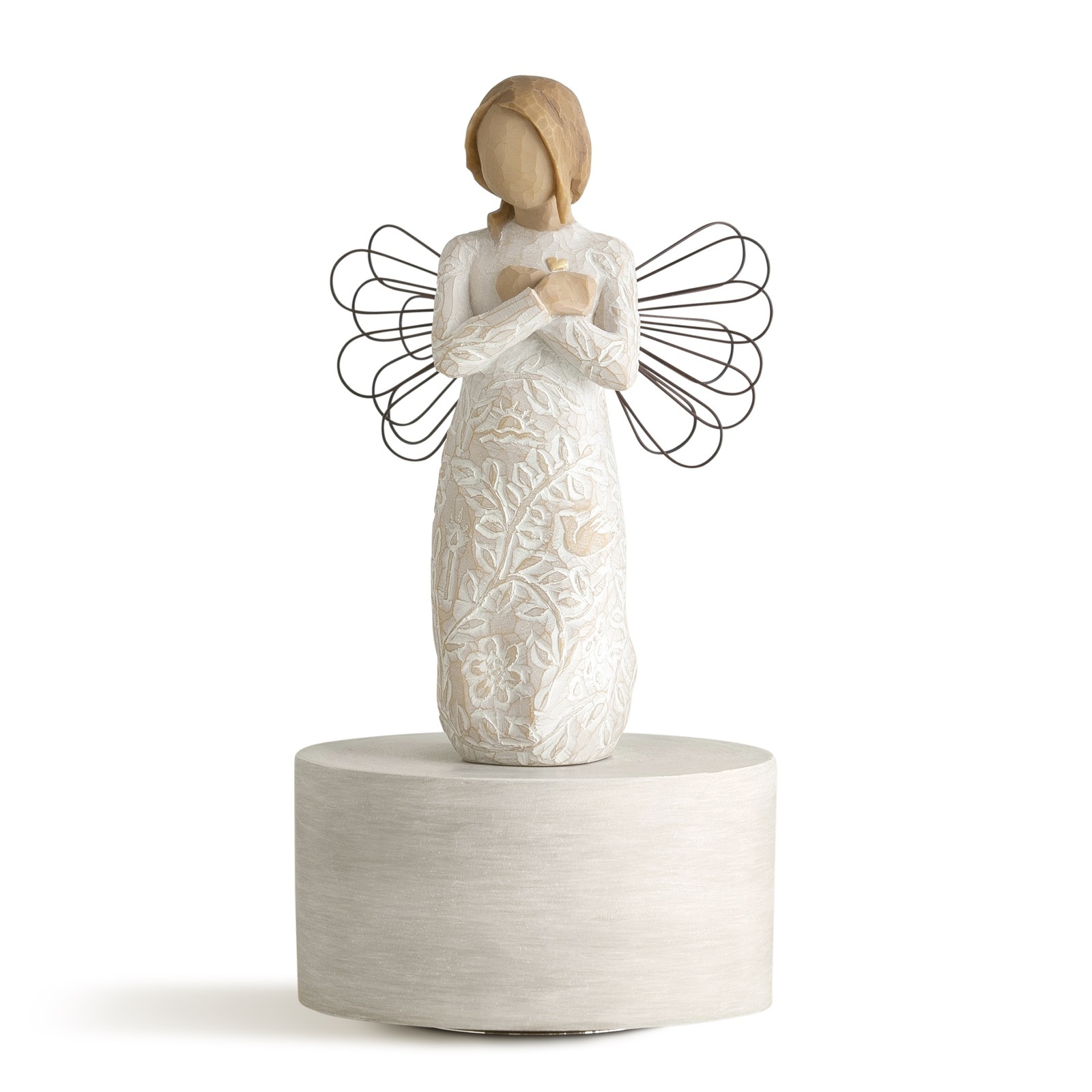 Musicals are sculpture in motion! A comforting gift to remember those we love. Music and movement transform this full-scale, beloved figure. The hand-painted base elevates the figure while it turns to the ageless and enduring tune, Till the end of time. A comforting way to offer warm remembrances and express sympathy.