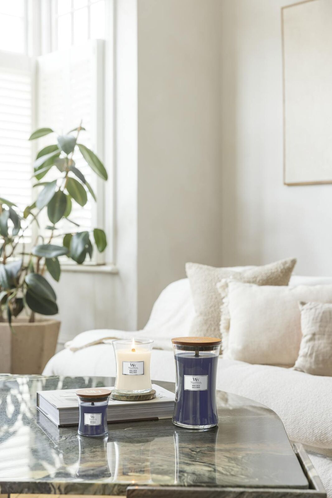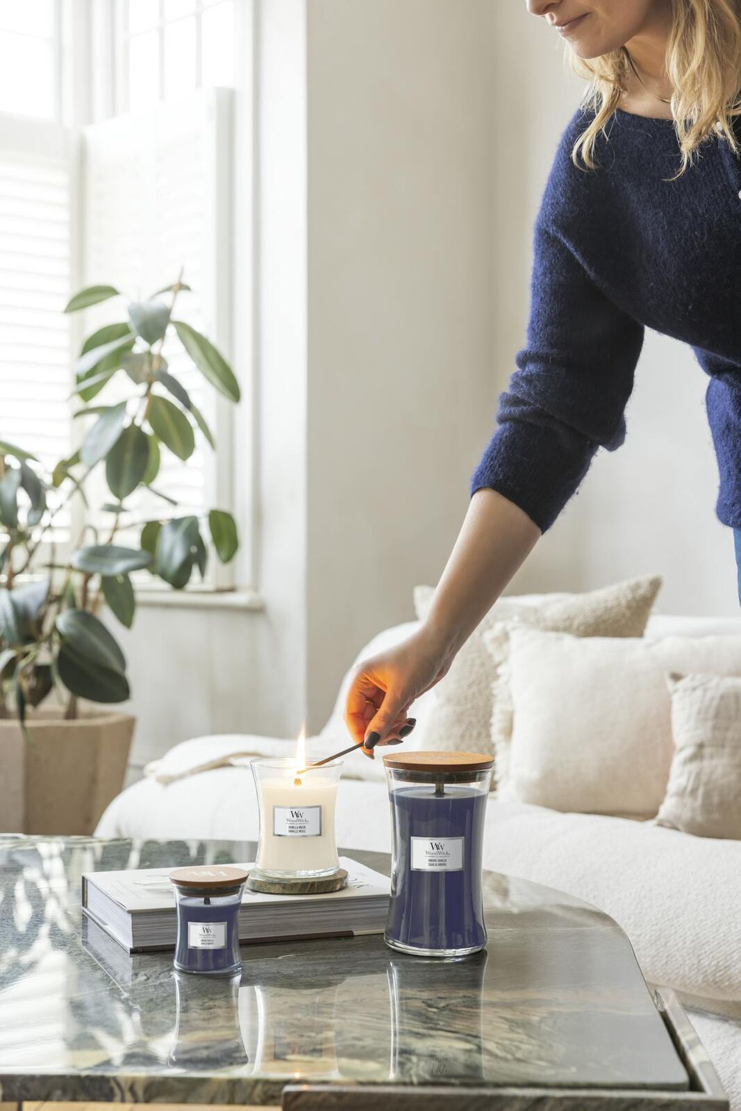 Woodwick Mini Hourglass Candles fill your home with sophisticated scents and a soft crackle from a natural wooden wick that Crackles as it Burns. The distinctive crackle of WoodWick candles is created by a patented PLUSWICK Innovation technology, designed to ensure a safe and consistent multi-sensory experience with faster fragrance and an optimal burn while fragrancing your home with the sound of a crackling fire.