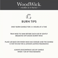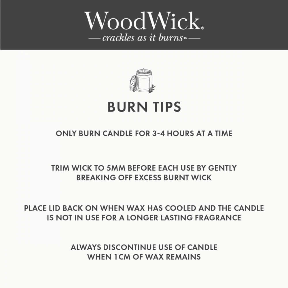 Fill your home with luxe scents and the gentle glow of a candle that crackles as it burns. Featuring a natural wooden wick that emulates the soothing sound of a crackling fire, high quality soy wax blend to ensure a smooth and even burn and a premium fragrance, each WoodWick Candle is carefully crafted with passion by experienced candlemakers, dedicated to the art of luxury candles.