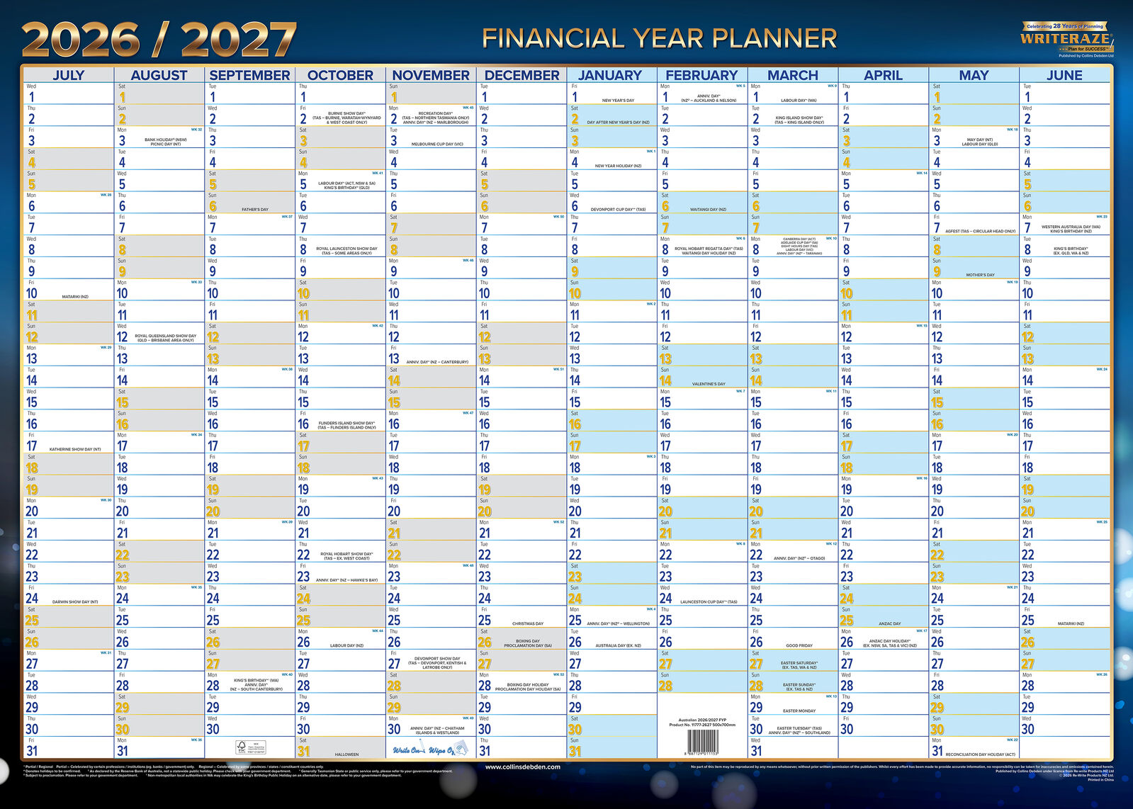 The Writeraze Financial Year Wall Chart is perfect for visual planning across the entire year. With a large 70 x 50cm format, it's ideal for offices, classrooms, and home workspaces.